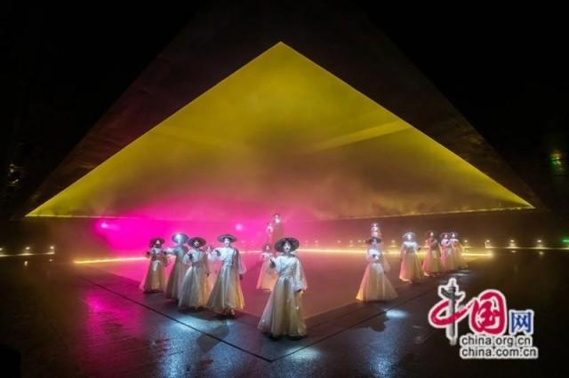 在“云之中”园林景观剧场,偶遇前世的自己。8000平方米的梦幻雾森,形构出“云海漫过屋顶”之感,50万片瓦片搭建勾勒出“千里江山图”,置身于一个背靠青山、脚踩屋檐的人间仙境。