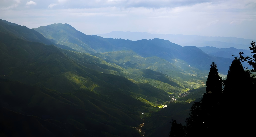 终于,有机会走进黄洋界。通往黄洋界的山路九曲回肠,两边郁郁葱葱的竹林,沿着蜿蜒的山路一直向上延展。随着高度上升,云雾开始清淡,远处的竹林也变得明晰起来。峰回路转间,黄洋界的雄姿就在前方。