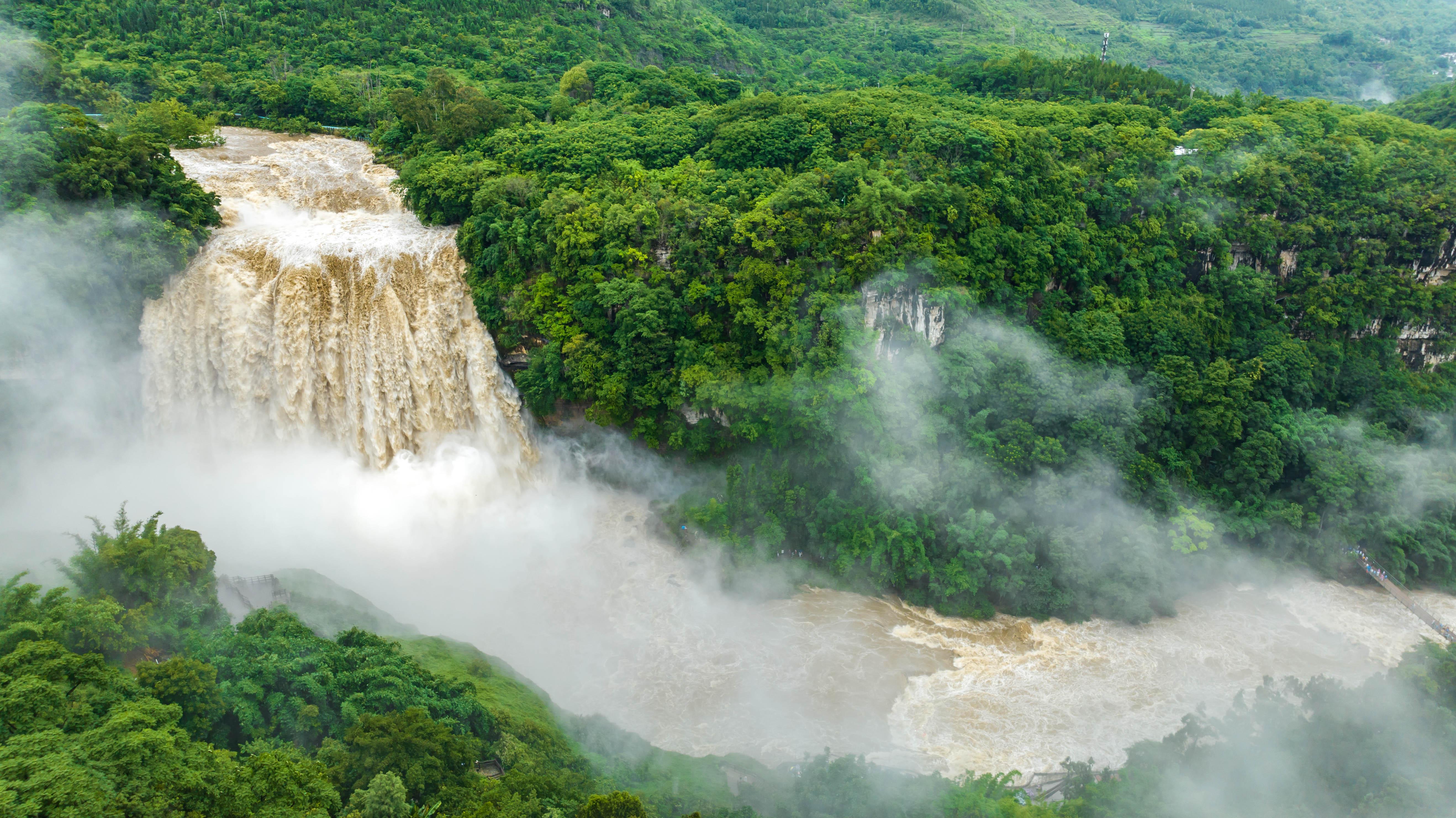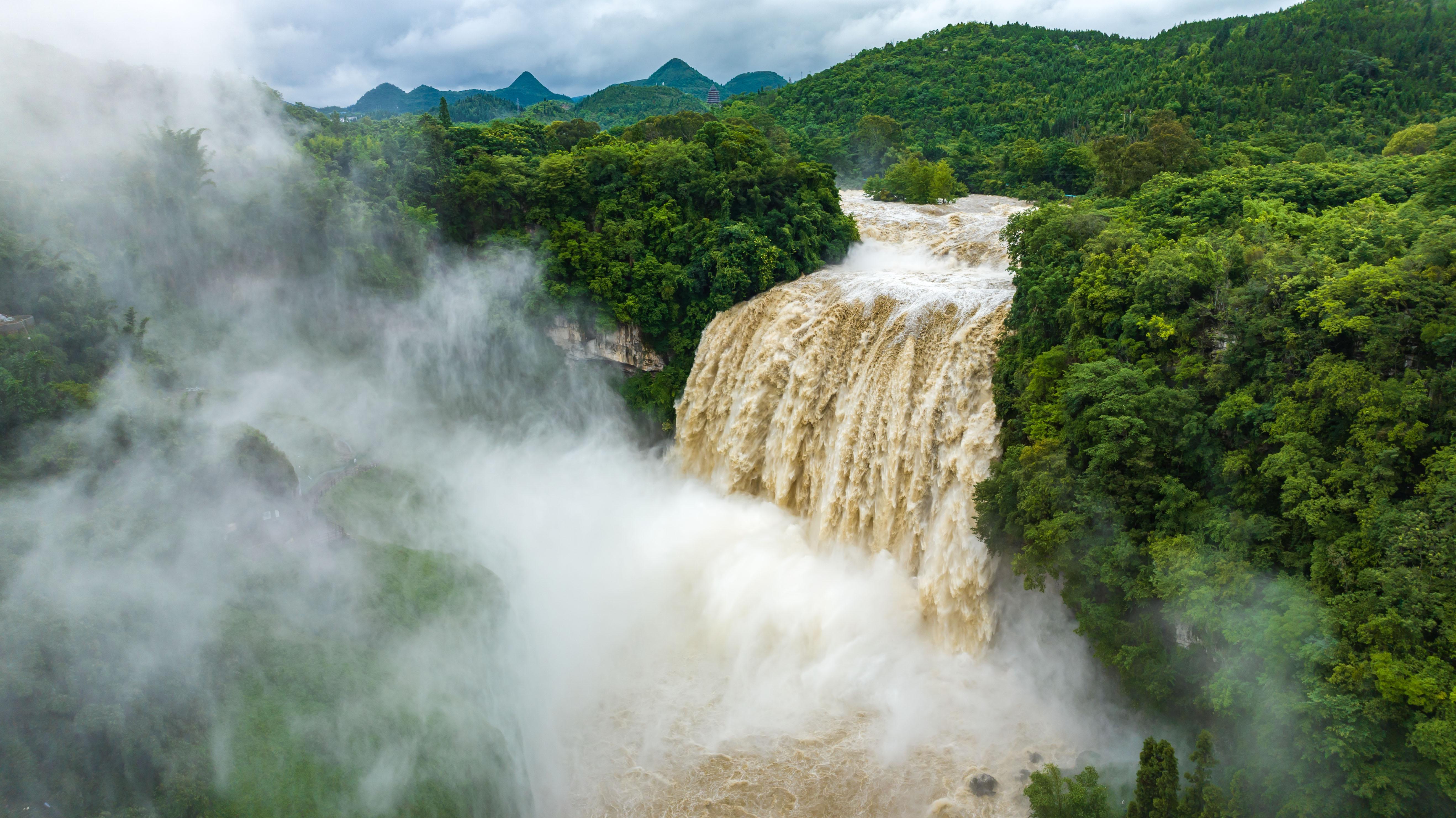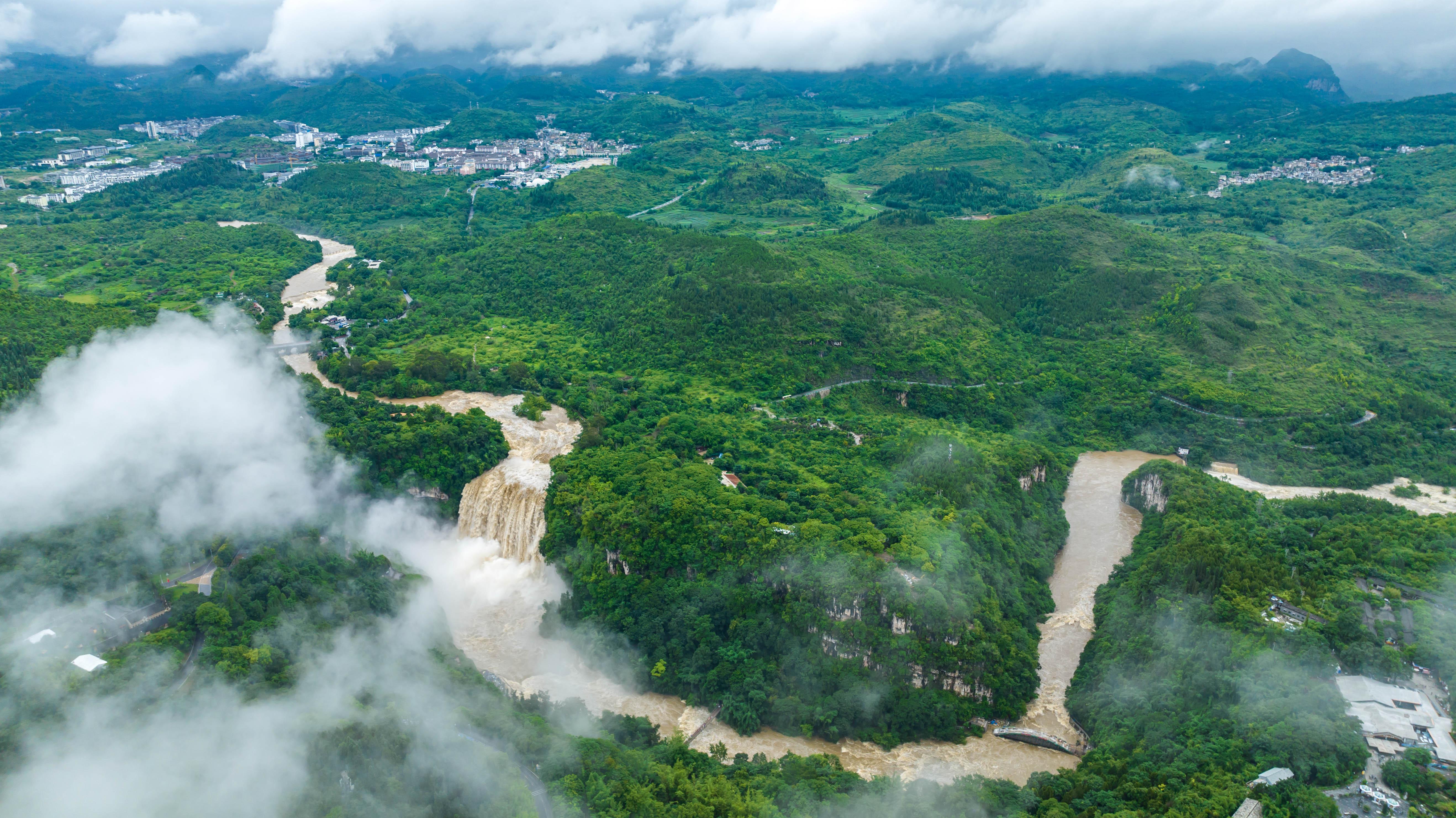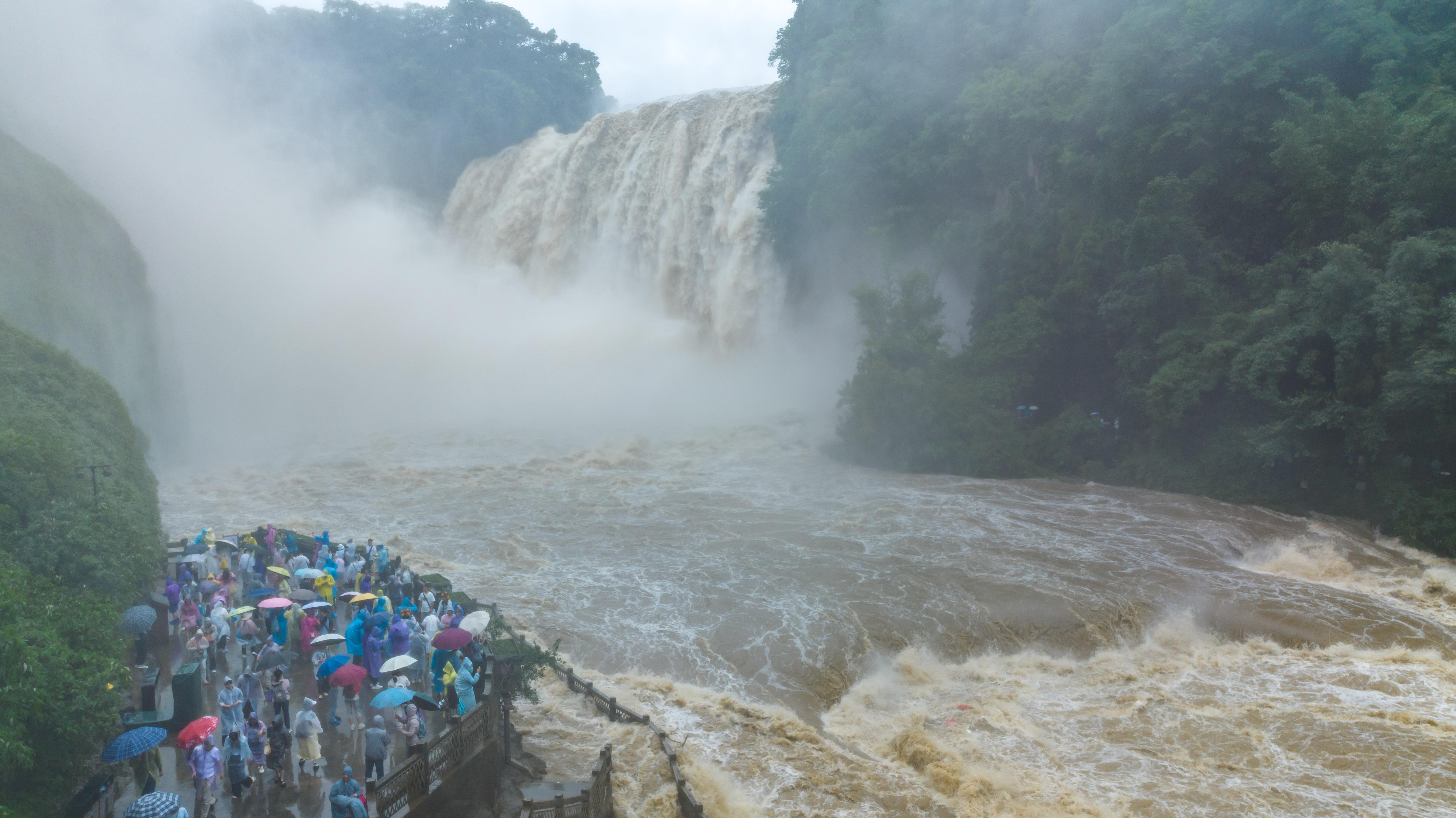 受持续降雨及上游来水影响,位于贵州省安顺市的黄果树瀑布迎来2025年入汛最大水量。据贵州省安顺市水文水资源局实测数据显示,当日黄果树瀑布流量最高时达每秒528立方米。