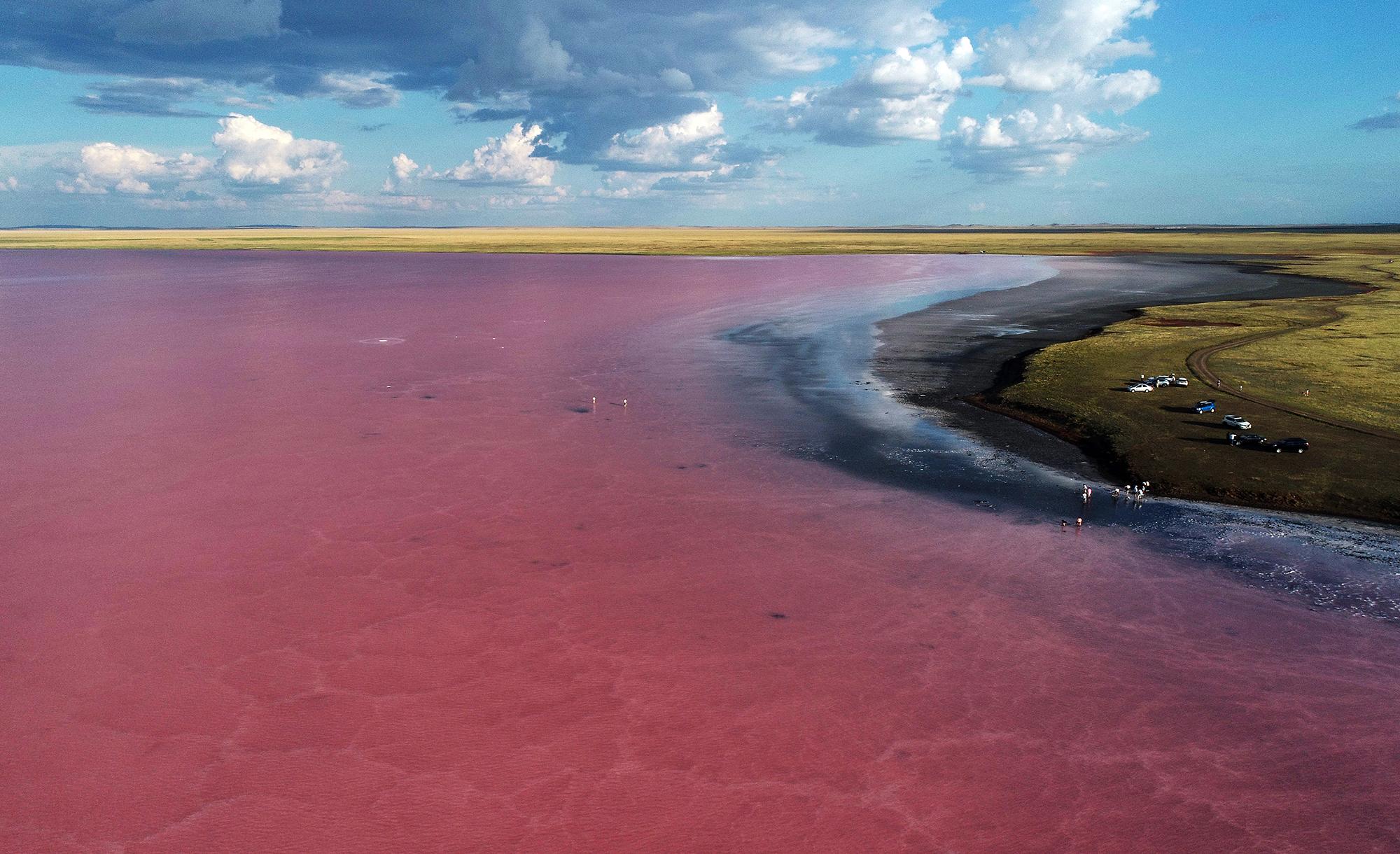 位于哈萨克斯坦阿克莫拉州的科贝图兹湖,因湖水中的一种微藻在高温干燥的夏季会产生β-胡萝卜素而使湖水呈现出从淡粉色到深玫红色的色彩变化,而得名“粉湖”,是该国著名的网红打卡景点。因旅游承载能力有限和环境问题,科贝图兹湖从2020年起实行封闭管理,并进行生态修复。今年夏季湖区重新对公众开放。