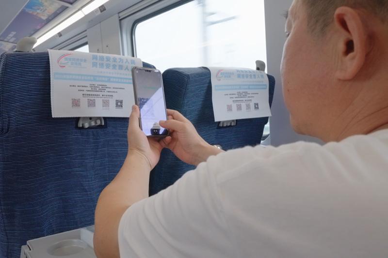从宏观引领到微观落地,“云岭网安”主题宣传列车通过“先建立认知、再解决问题”的宣传路径,将宣传内容融入乘车场景中。随处可见的小桌板贴纸、行李架彩贴,方便旅客随时可见可学,列车过道内镜框展示的政策解读或操作指南,满足旅客的深度阅读需求,让不同阅读习惯的旅客都能获取实用知识。