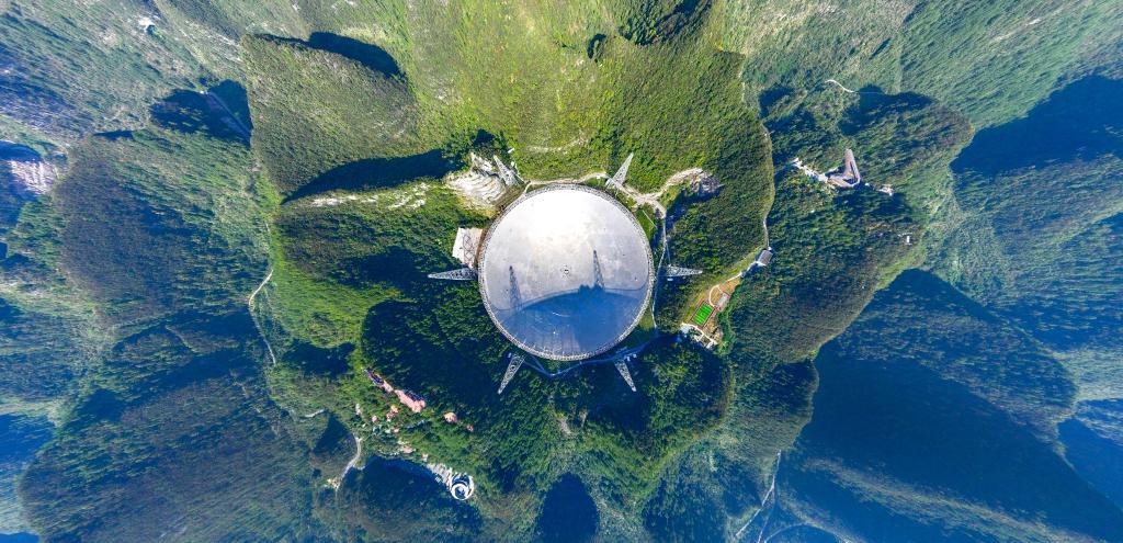 这是2024年9月25日拍摄的“中国天眼”全景(无人机照片,维护保养期间拍摄)。 新华社记者 欧东衢 摄