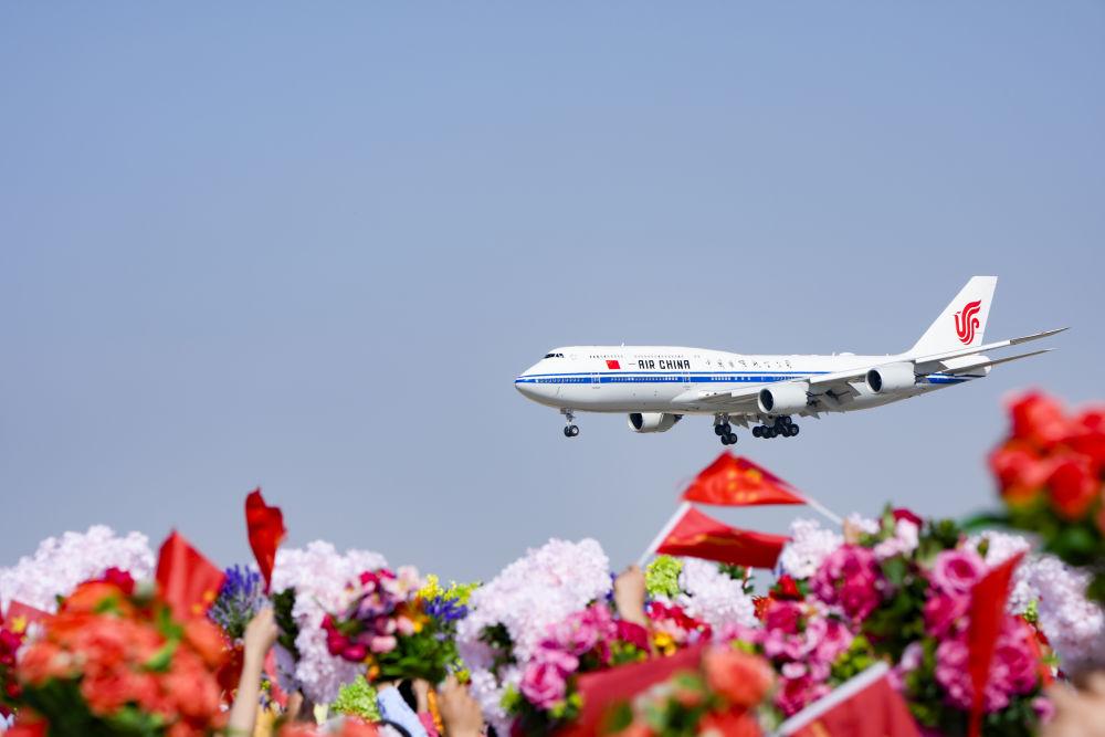 飞机沿着跑道滑行,飞向万里碧空。送别的人群,沉浸在幸福的喜悦中,久久不愿离去。
