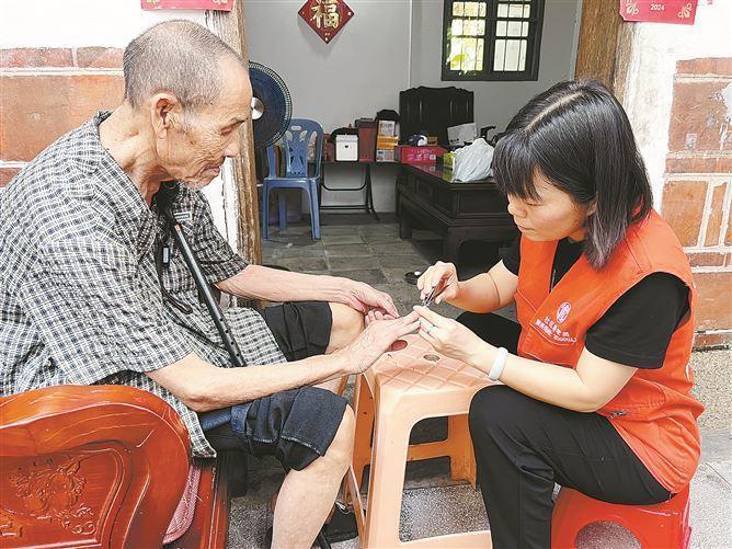 海沧区新阳街道霞阳社区助老员入户关心关爱老年人。
