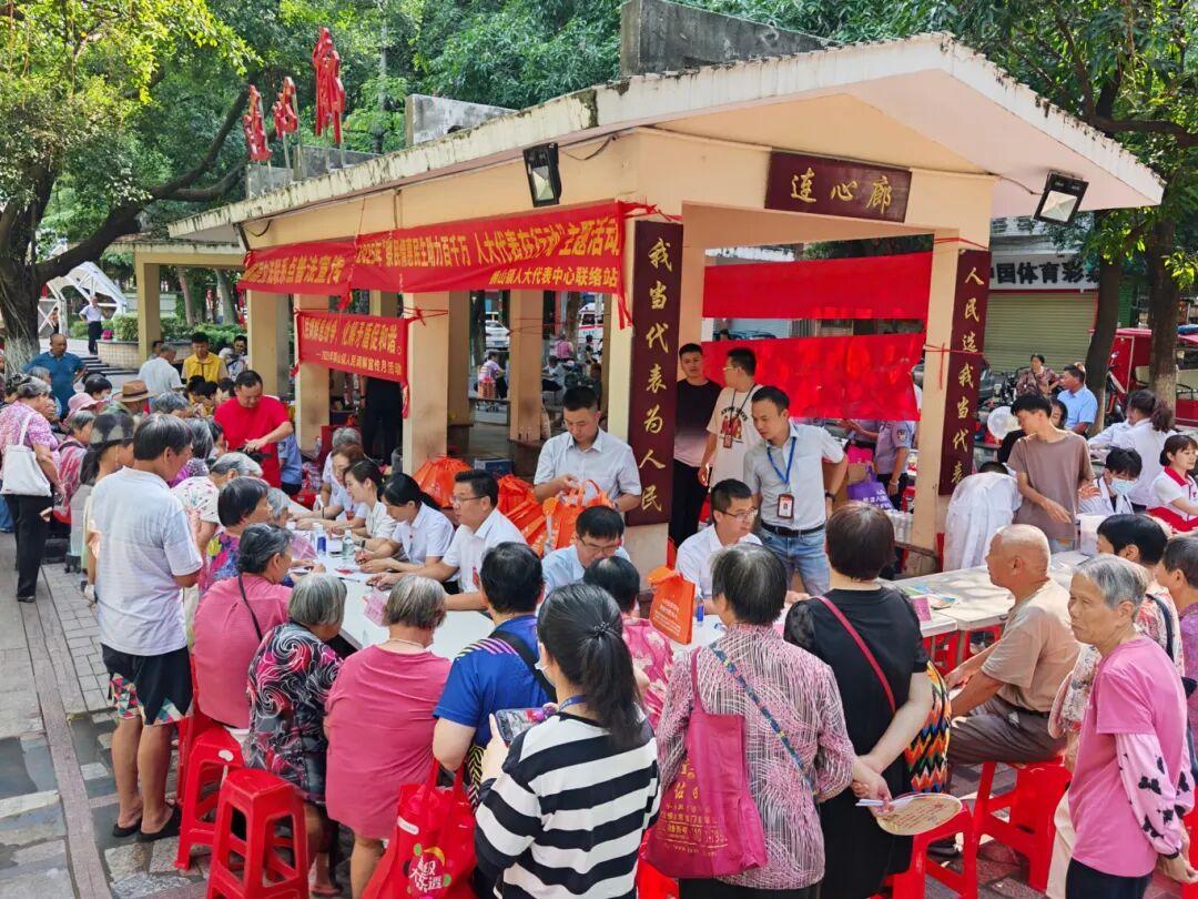 7月8日,佛山市南海区狮山镇人大代表中心联络站在镇人大主题公园连心廊旁,开展代表联系服务群众活动。