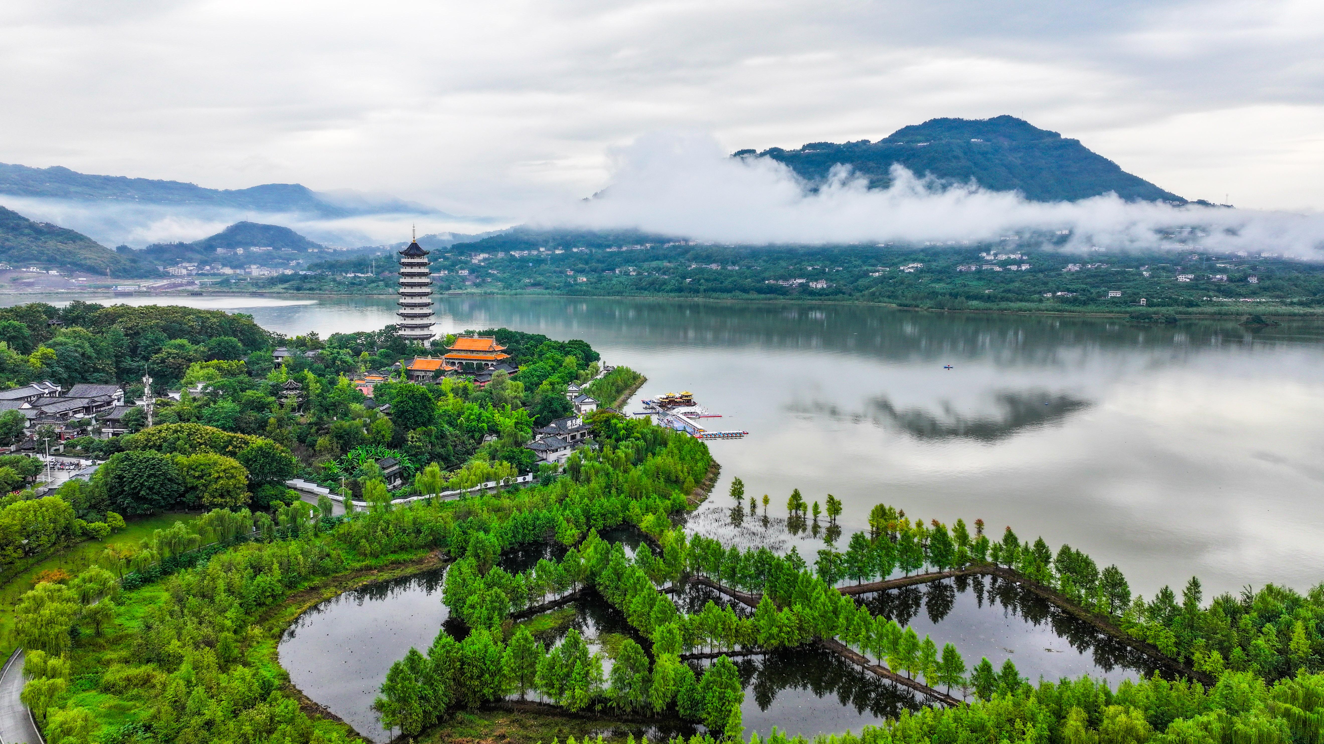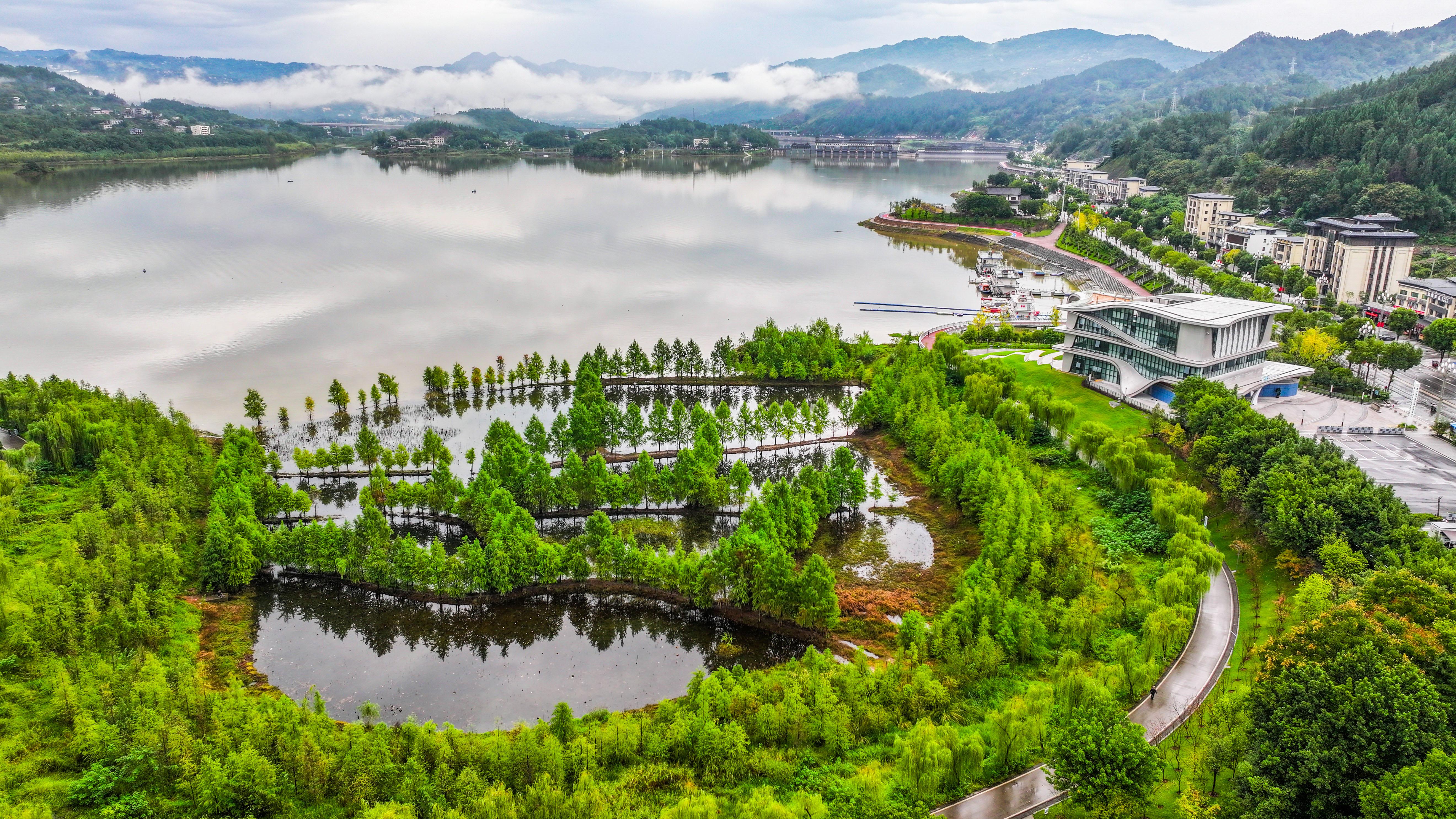 金秋时节,重庆市开州区汉丰湖一带秀美如画。近年来,开州区实施适应季节性水位变化的基塘工程、林泽工程、鸟类生境重建工程和多带多功能生态缓冲系统工程,全力推进汉丰湖环境整治和生态修复,呈现出“湖在城中、城在山中、人在山水中”的和谐画卷。