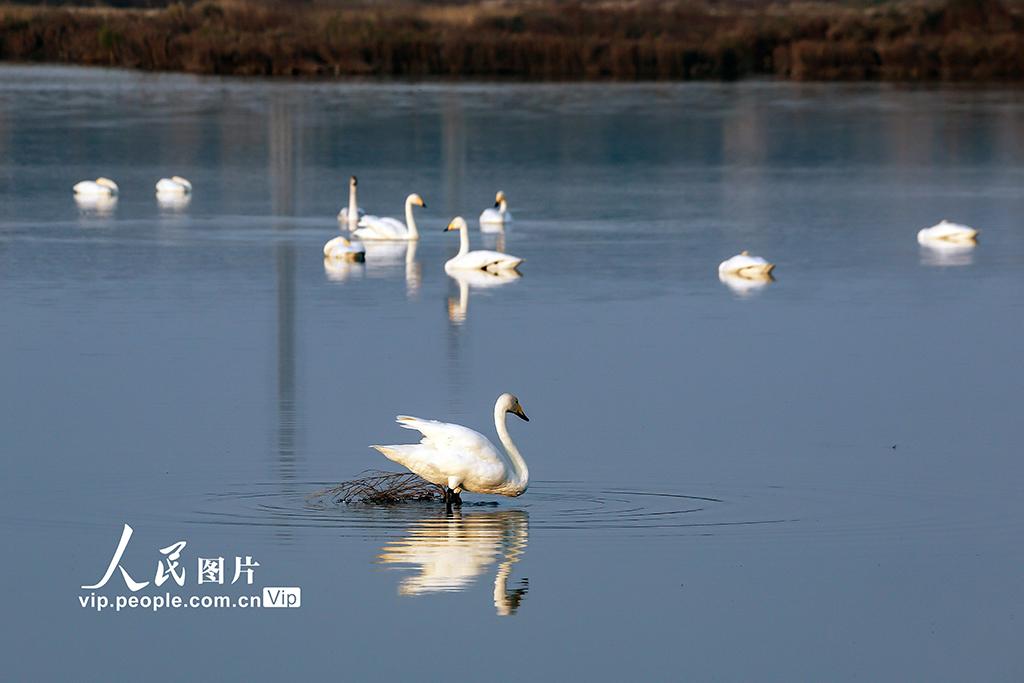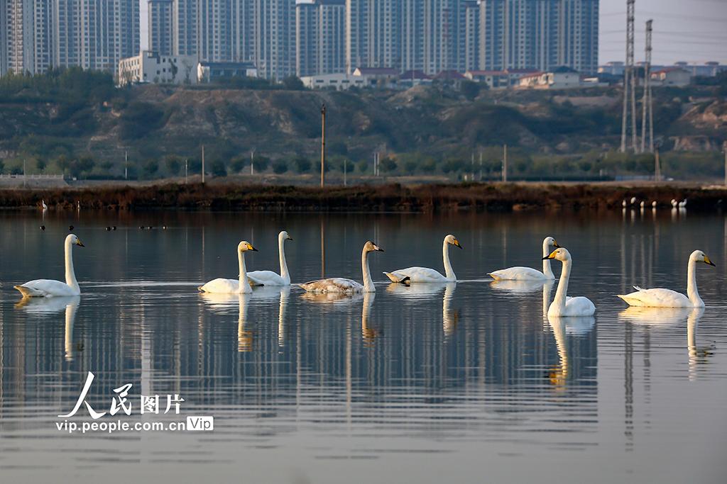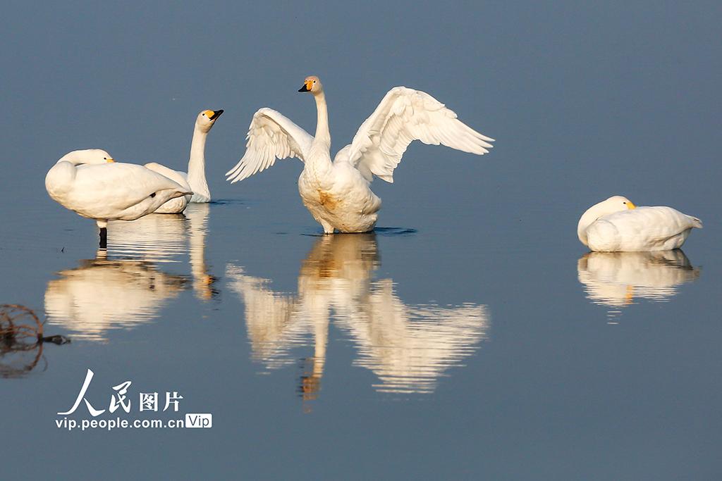 2025年10月27日,山西省运城市盐湖湿地景区迎来了首批越冬的天鹅,它们在水面上悠然嬉戏、展翅飞翔,为盐湖增添了一道灵动的风景线。姜桦摄