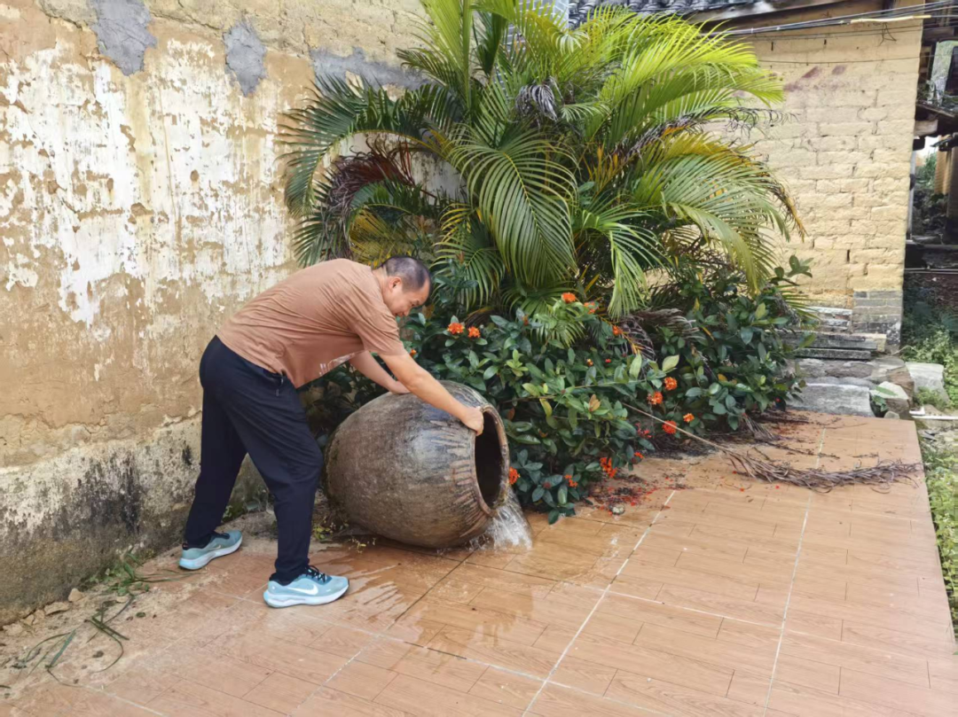 人大代表们充分发挥模范带头作用,率先投身爱国卫生运动,深入防控一线开展“清积水、灭蚊虫”专项行动,对村民居住区、田间地头及公共区域开展“拉网式”排查清理。行动中,人大代表重点对房前屋后、低洼地带、垃圾中转站等蚊虫孳生区域精准喷洒药剂,从源头切断传播链。在台风期间,代表们积极帮助村民清理庭院积水,并重点对沿河住户、老旧瓦房天井等易积水部位进行专业化清理。大塘村村民盘阿姨表示:“人大代表不仅彻底清理了天井积水,还指导我们如何防止水缸生蚊,真是太周到了!”