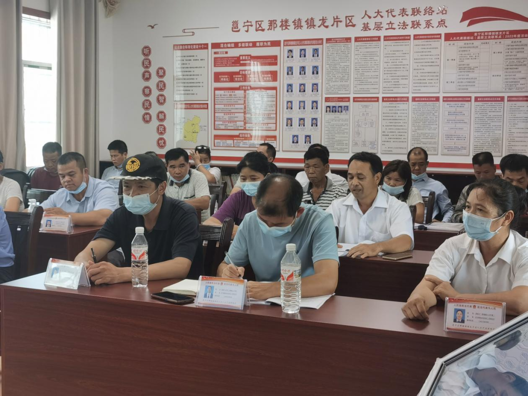 帽子岭水库作为国家级水源保护地,总面积11.66平方千米,总容量650万立方米,日供水量600立方米,是那楼镇的重要水源地之一。此前,部分村民为发展经济在水库周边种植桉树,虽短期获利,却违反《广西壮族自治区饮用水水源保护条例》中“禁止在水源保护区新种植轮伐期不足十年用材林”的规定,造成水源污染。由镇龙片区人大代表组成的志愿服务队坚持“众人的事情众人商量”,主动深入村(社区)走访调研,与群众协商解决办法。