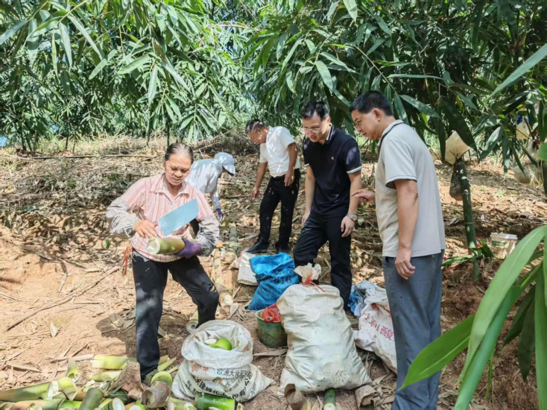 退桉后,部分村民收入受影响。如何盘活闲置林地、带动增收,成为代表志愿服务队的核心任务。代表们通过走访群众、市场调研、外出学习,结合本地温暖湿润、土壤肥沃的自然条件,锁定了麻竹产业——麻竹不仅水土保持能力强,能守护水库生态,还契合螺蛳粉产业对竹笋的旺盛需求,竹叶、竹材亦有经济价值。