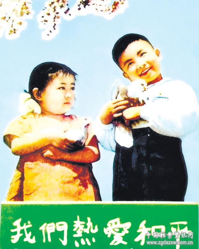 在浙江省丽水市莲都区档案馆的展厅里,有一张宣传画格外醒目:蓝色的天空,几束盛开的桃花,春意盎然;男孩和女孩各抱着一只和平鸽,红扑扑的脸蛋、灿烂的笑容,生机勃勃;下方是绿底手写体大字“我们热爱和平”。在抗美援朝时期,这张宣传画家喻户晓,其取材自1952年6月1日《人民日报》头版刊登的一张照片,拍摄者正是丽水籍摄影师阙文。