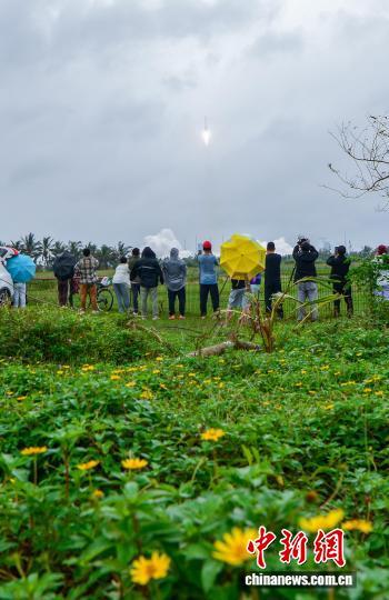 11月3日11时47分,中国在文昌航天发射场使用长征七号改运载火箭,成功将遥感四十六号卫星发射升空,卫星顺利进入预定轨道,发射任务获得圆满成功。许多民众前来观看火箭发射。 中新网记者 骆云飞 摄