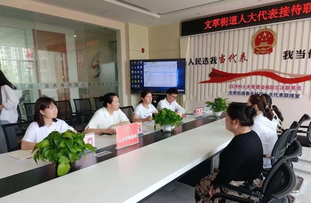 2022年,州人大常委会启动了“千名代表大接访”活动,全州1万多名人大代表与5万多名群众建立经常性联系。通过代表工作站、联络室等平台,开展集中接访、专题调研等活动,形成“五个一线”工作法:代表们在一线宣讲政策、接访走访、视察调研、提出建议、办实事好事。如,来自蒙自市的人大代表针对创文难点问题实地走访,现场督促整改;泸西县代表参与矛盾纠纷调解,将问题化解在基层;来自个旧市的人大代表推动万寿菊种植技术培训,帮助农户每亩增收2500—3000元;来自石屏县的人大代表协调解决峨石红高速公路建设中的征地纠纷等问题。全州各级人大代表为群众办实事好事2400余件。