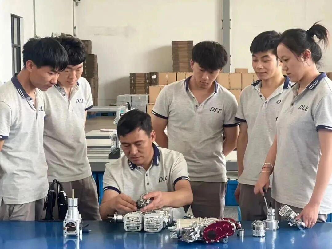 △州人大代表董林(左三)指导职工开展DLE航模与航空发动机研发工作,助推弥勒航空经济发展。红河州人大常委会 供图