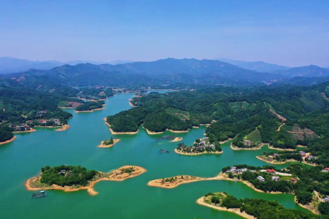 天蓝、水碧、岸绿,生态美的苍梧县梨埠镇旺湾村爽岛水库(颜桂海/摄)