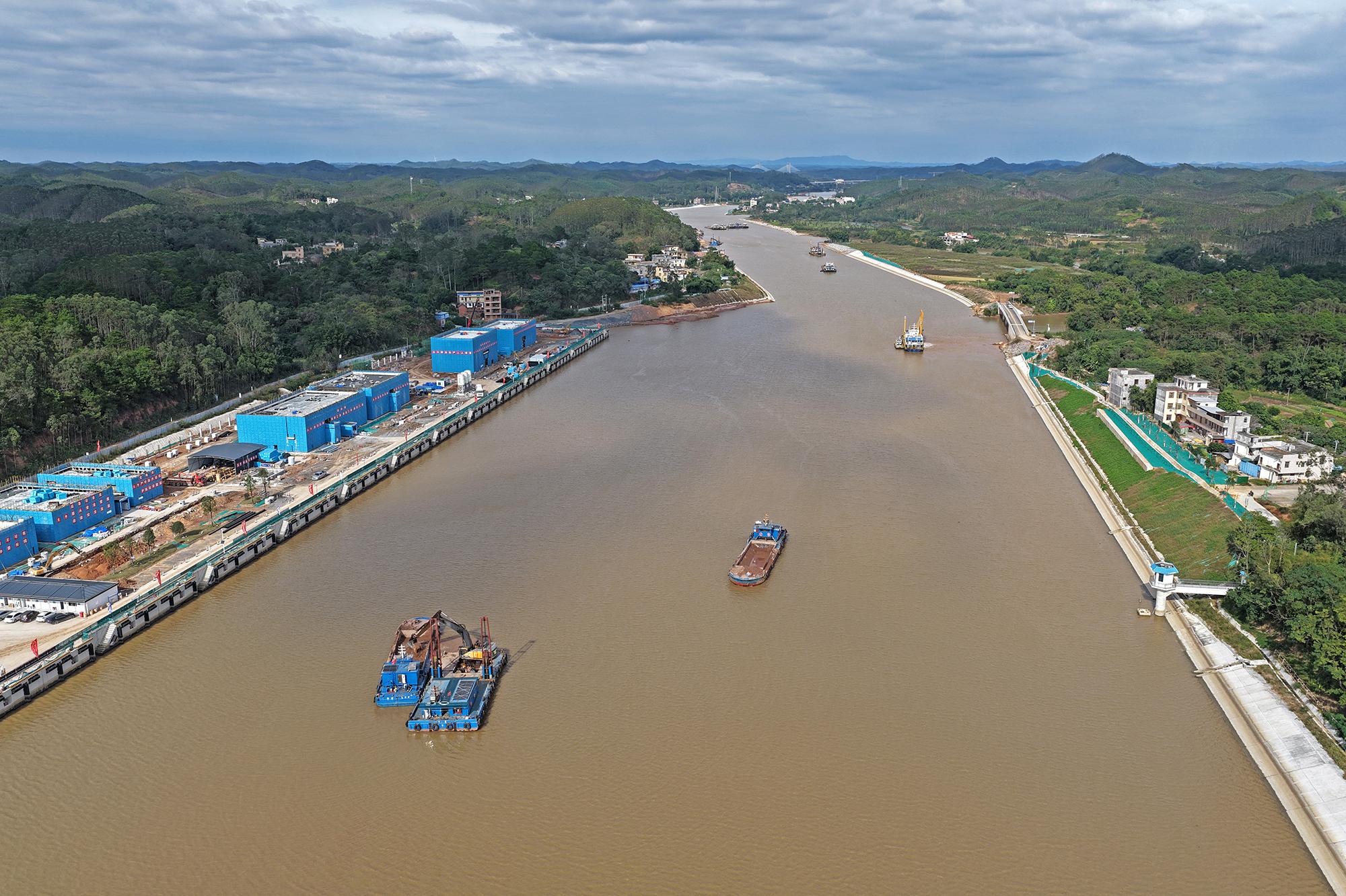 经过3年多的建设,目前广西平陆运河主体工程建设已进入冲刺阶段,部分航道已经成型。