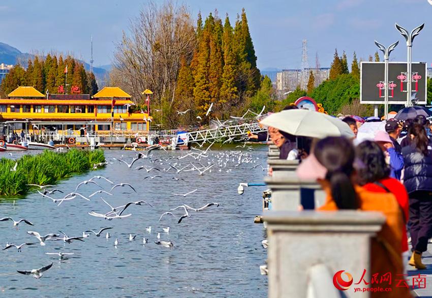 自1985年起,数万只红嘴鸥每年不远万里从西伯利亚启程,飞抵春城。40年来,它们不仅是昆明的客人,更是这座城市冬日里跃动的音符。人鸥同乐的画面,已成为滇池畔最美的风景。