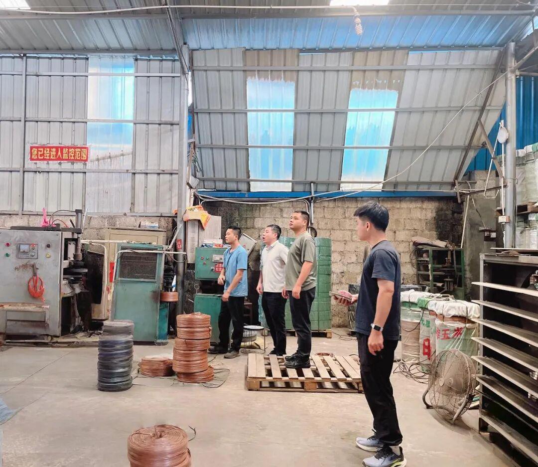 ▲蒙公镇人大代表、副镇长林峰(左二)到企业一线排查涉重金属问题。
