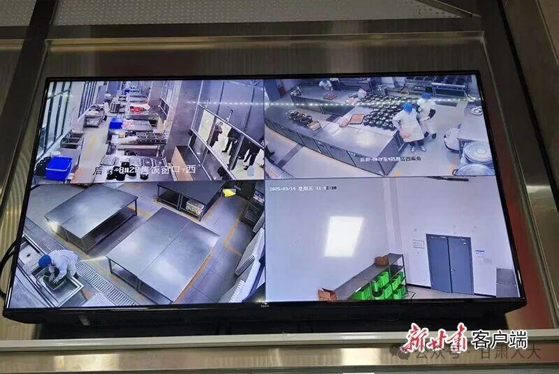 平凉一中餐厅,通过屏幕可以实时看到后厨操作情况。新甘肃·甘肃日报记者田丽媛 摄