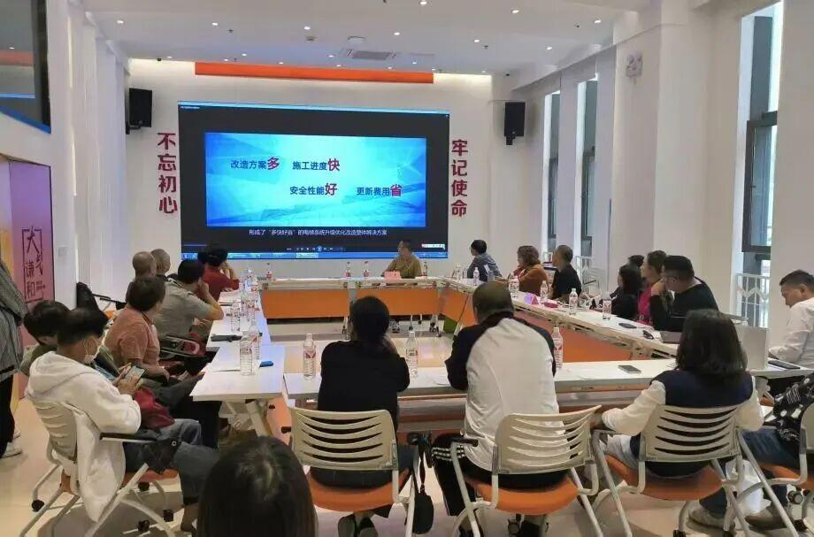松石苑小区的8部电梯已服役17年,更换电梯的需求日益突出。而居民们想要更换高龄电梯却面临筹资难、共识难、流程难三重“拦路虎”。作为居民区党总支书记,同时也是松江区人大代表的陈君英在充分调研后,牵头居委会、业委会、物业先后进行了5轮征询,并邀请居民代表进基层实践站开展多次议事会。通过“面对面”沟通答疑,将“换不换、怎么换、换什么”等关键决策权交到居民手中。经过全过程人民民主的意见征询、细节沟通,松石苑老旧电梯更新的实施方案最终顺利落地。岳阳街道深入总结陈君英代表的换梯全流程经验,将其提炼成为可复制的标准化方案,编制成一本名为《当电梯老了——既有住宅老旧电梯更新全流程指南》的手册,为其他社区同类问题提供参考,实现既有住宅老旧电梯更新从“解决一件事”到“办好一类事”的跃升。