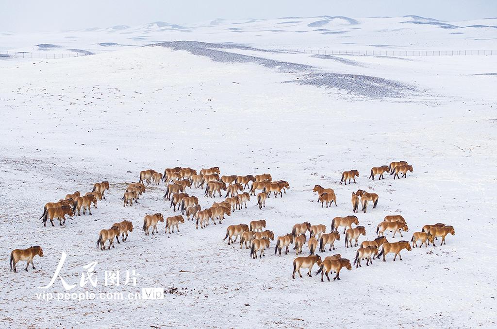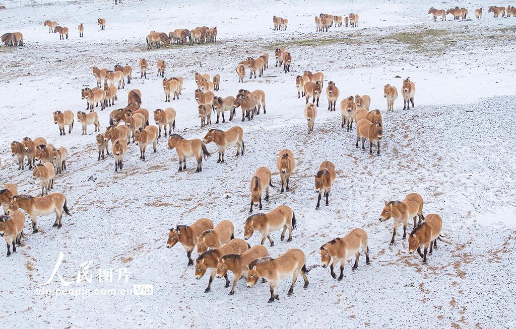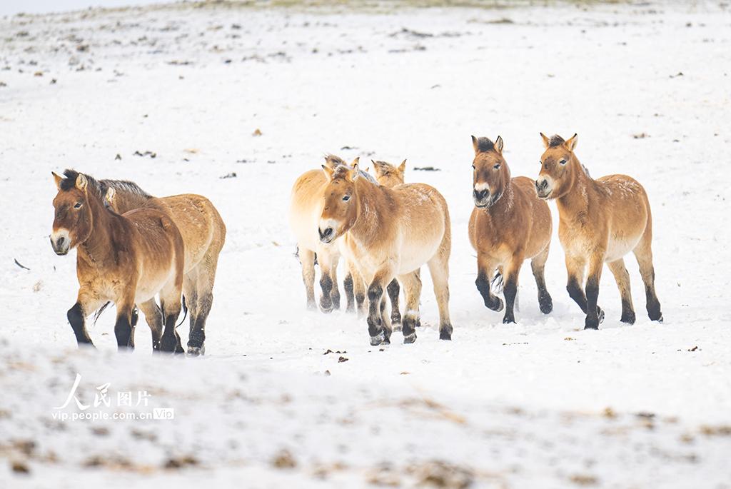 据了解,目前,中国境内普氏野马总数已突破900匹,约占全球总量的三分之一,被国际公认为物种“重引入”的成功典范,也是我国生物多样性保护、生态文明建设的重要成果。何龙摄(人民图片网)