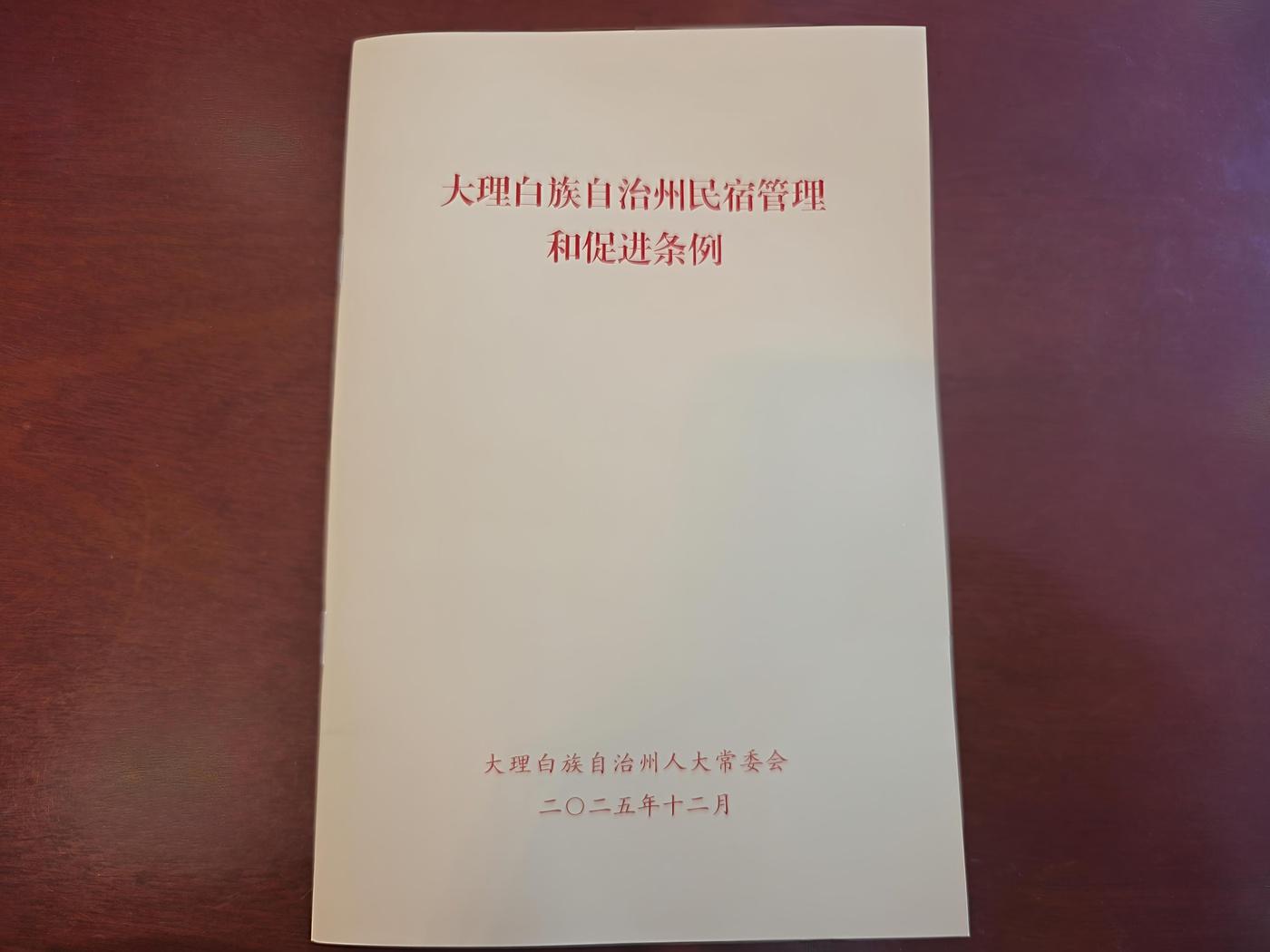 12月26日,云南省大理白族自治州人大常委会召开座谈会,会上公布,《大理白族自治州民宿管理和促进条例》将于2026年1月1日起正式施行,这是云南省首次以立法形式规范民宿产业发展。