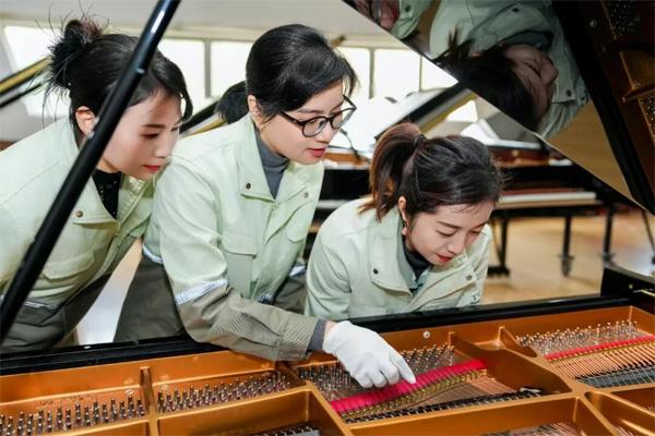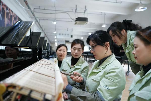 雷春华介绍,以整音环节为例,整音师的选拔聘任极其严苛,从培训到实习到外派学习,有一套严格的职业成长机制。目前参与公司钢琴制造的整音师,大多拥有超过十年的工作经验。