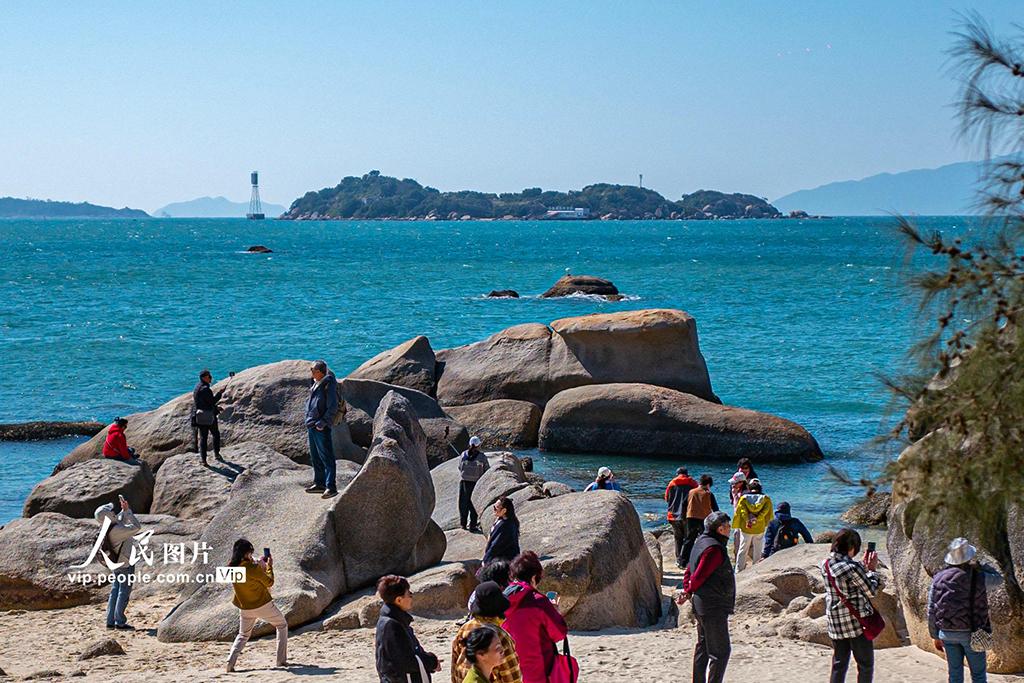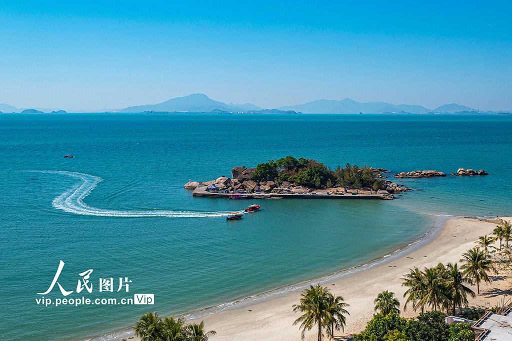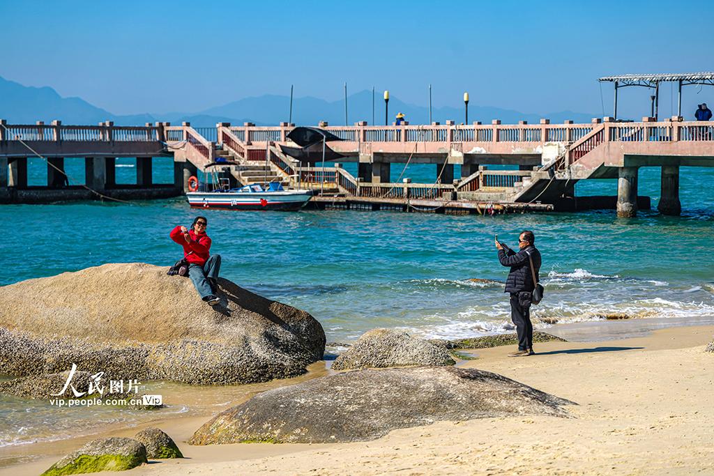 冬日时节,不少游客来到广东惠州巽寮湾,漫步于细软沙滩,欣赏蔚蓝海景,感受温暖宜人的海滨冬日。王初摄(人民图片网)
