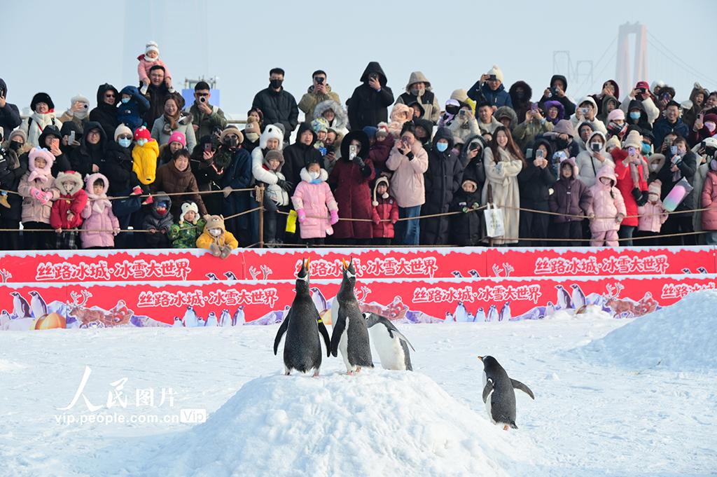 2026年1月11日,位于新疆昌吉回族自治州昌吉市的“丝路冰城”冰雪大世界吸引众多游客。园区内不仅有精美的冰雕艺术,还设置了企鹅互动、驯鹿合影、雪地摩托、冰上自行车等二十余项冰雪娱乐体验,让游客充分感受冰雪魅力。当地正积极推动“冰雪+旅游”融合发展,将冬季的“冷资源”持续转化为文旅“热经济”。陶维明摄(人民图片网)