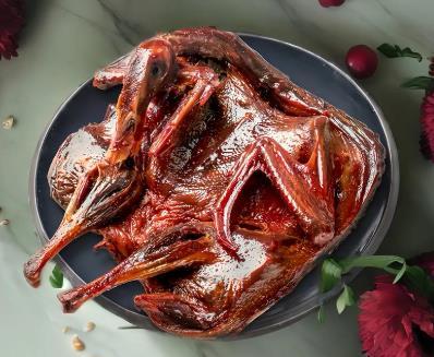最见功夫的,不在卤,而在“收”。卤好的鸭子捞出,须晾在通风的檐下,让风与时光慢慢抽走水分。这便看天了,南风天黏腻,北风天燥烈,唯有深秋那几日干爽的北风,最是金贵。酱鸭陈守着他的鸭子,像守着一群即将蜕变的孩子。何时该挪个位置,何时该翻个面,全凭指尖一拈的分量,眼里一抹的神色。风干到七成,鸭子皮肉紧绷,泛出玛瑙般润泽的暗红色。此时,最后一道工序来了:刷上一层薄薄的饴糖水,悬进烤炉,用柏树枝的微烟,徐徐地熏。
