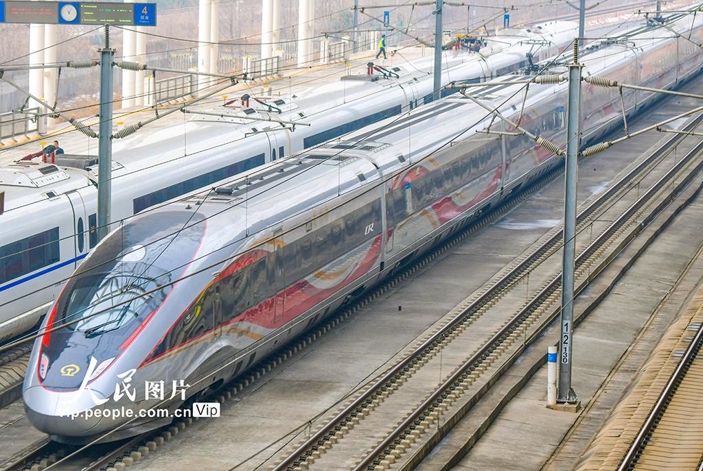 2026年1月26日零时起,全国铁路执行新的列车运行图。调图后,北京与延安间将首次开行高铁动车组列车,最快5小时42分可达,为红色旅游和文化交流提供了更便捷的交通条件,也为革命老区发展注入了新动力。同日,延安还将开通至上海、广州、郑州、成都等多个城市的高铁列车。张怡熙摄(人民图片网)