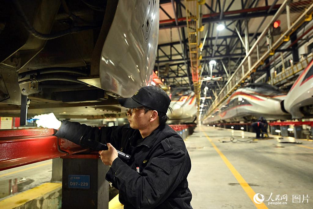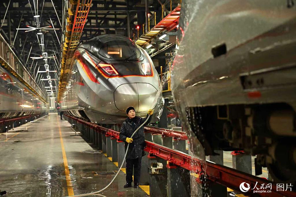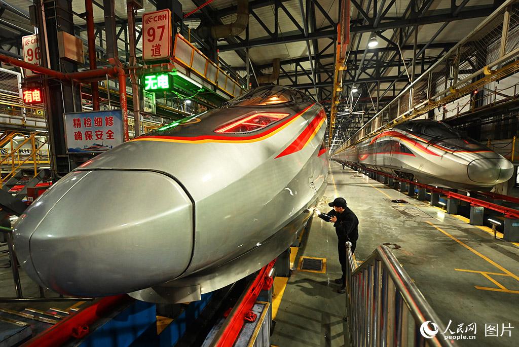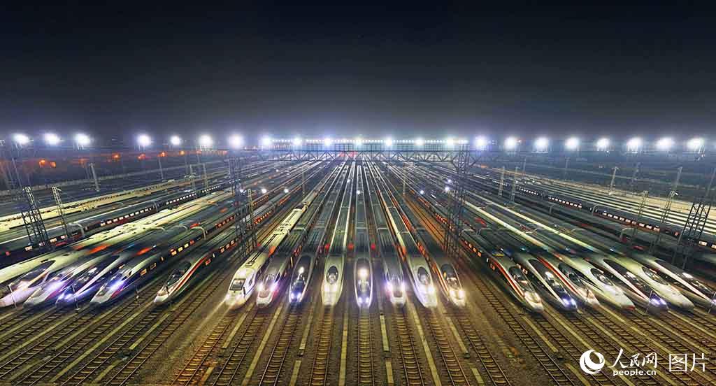 一年一度的春运即将开启,2026年铁路春运自2月2日开始,至3月13日结束,为期40天,全国铁路预计发送旅客5.39亿人次、同比增长5.0%。1月24日凌晨,华中地区最大的动车检修基地——武汉动车段,一列列检修后的动车组在铁轨上整齐排列,如“万箭齐发”,又似“陆地舰队”,即将奔驰在祖国广袤的大地上,迎接旅客回家团圆。人民网记者 雷声摄