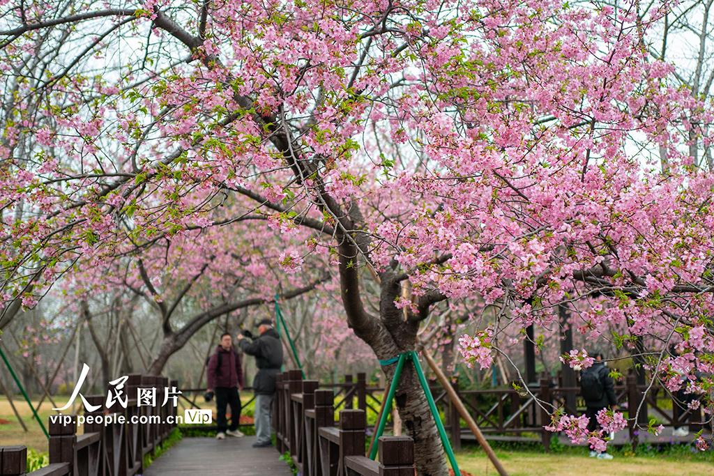 2026年3月3日,位于上海宝山的顾村公园内,早樱已竞相绽放,粉色花海吸引游客纷纷前来。