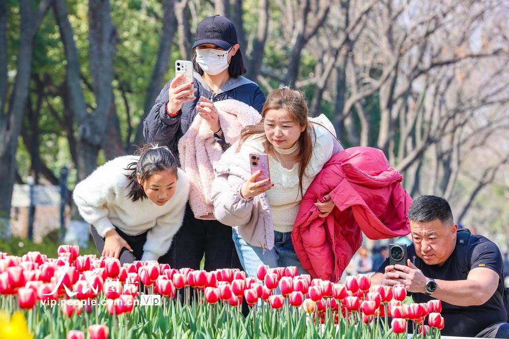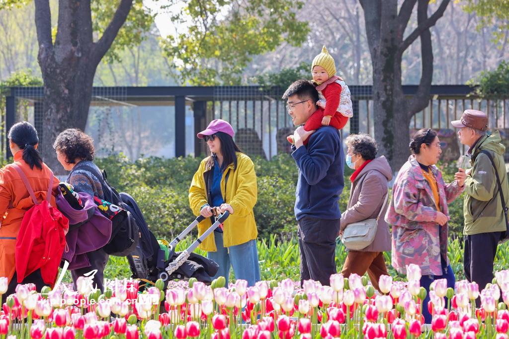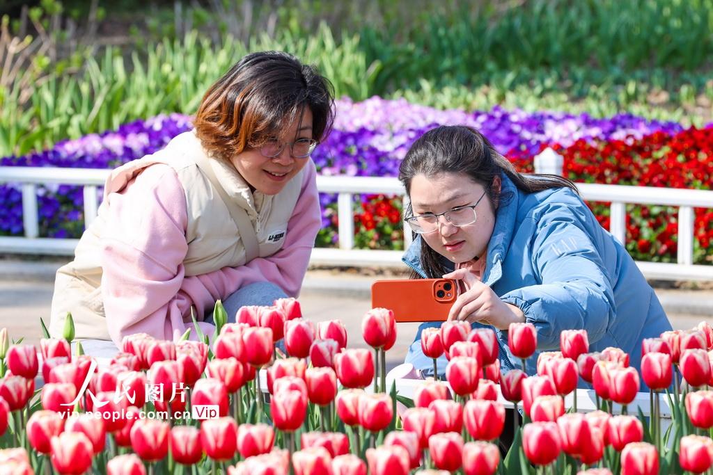2026年3月14日,江苏南京玄武湖景区情侣园内的郁金香竞相绽放,春意盎然,吸引众多游客前来踏青赏花,乐享美好春光。史俊摄