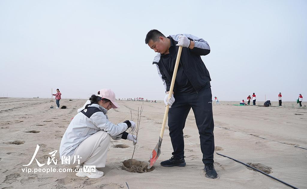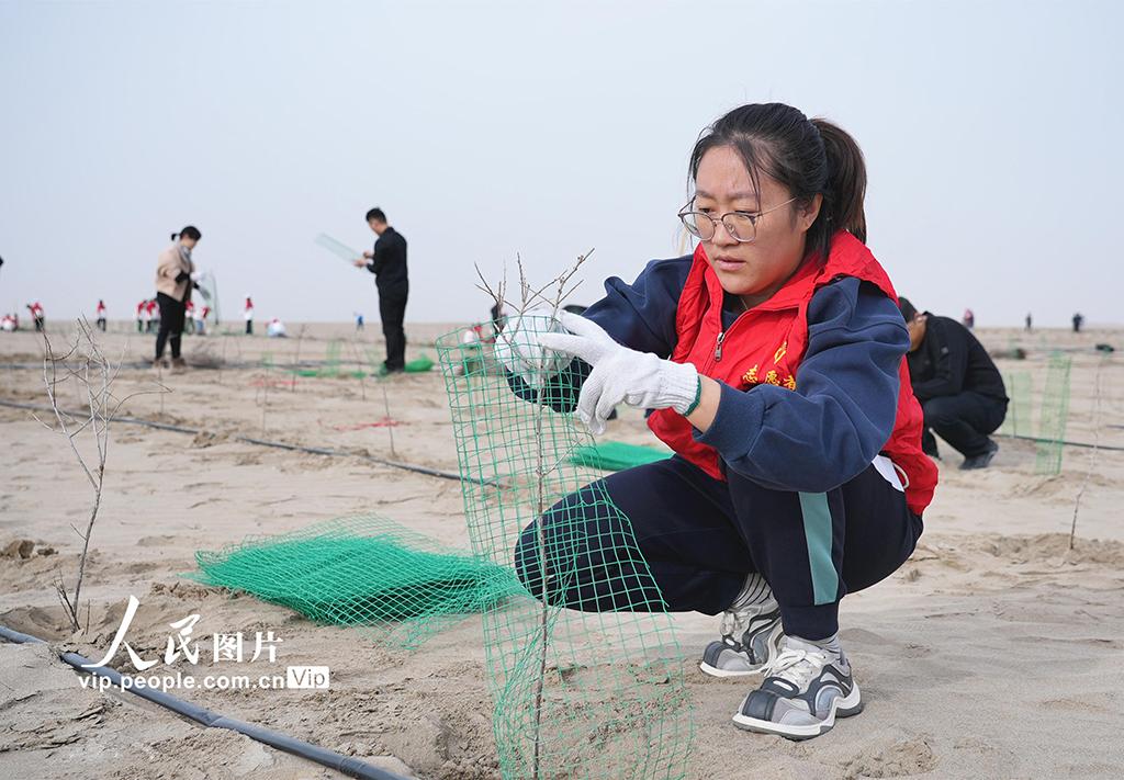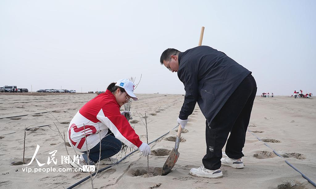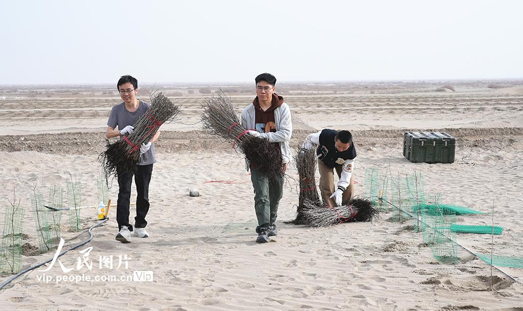 2026年3月24日,在新疆阿克苏地区阿瓦提县英艾日克镇艾西曼区域,县委组织部党员干部参加义务植树活动。