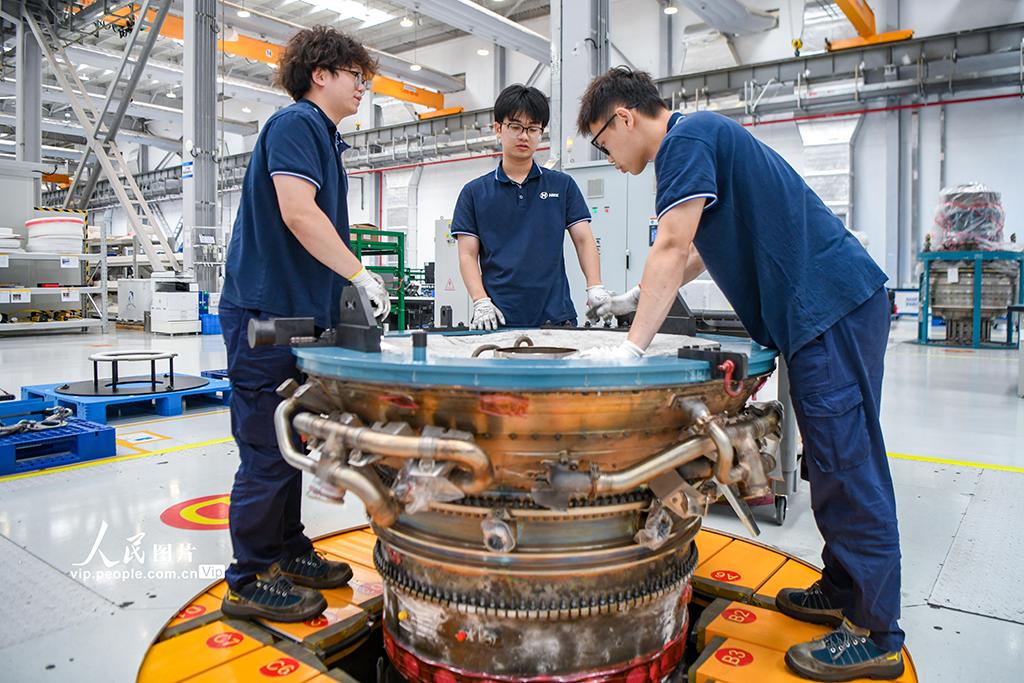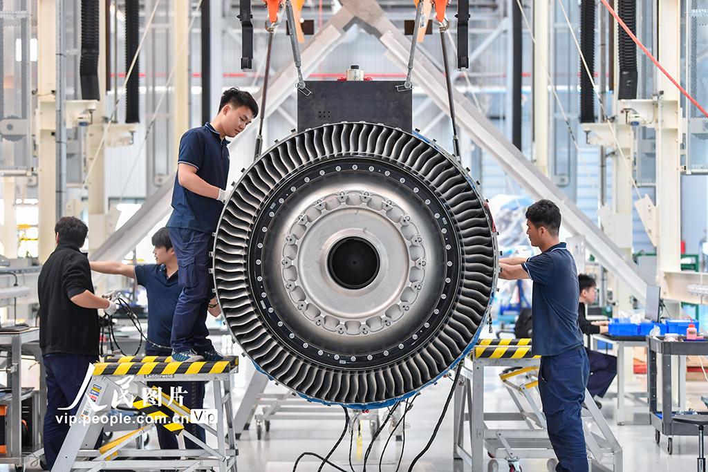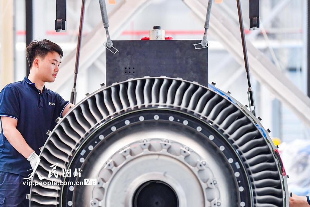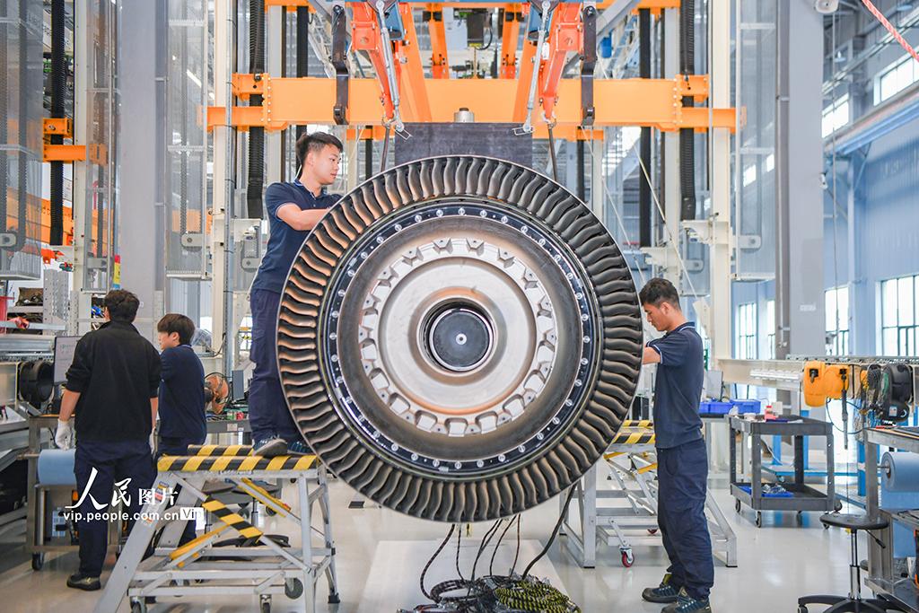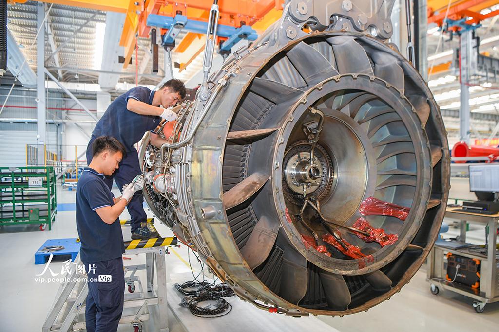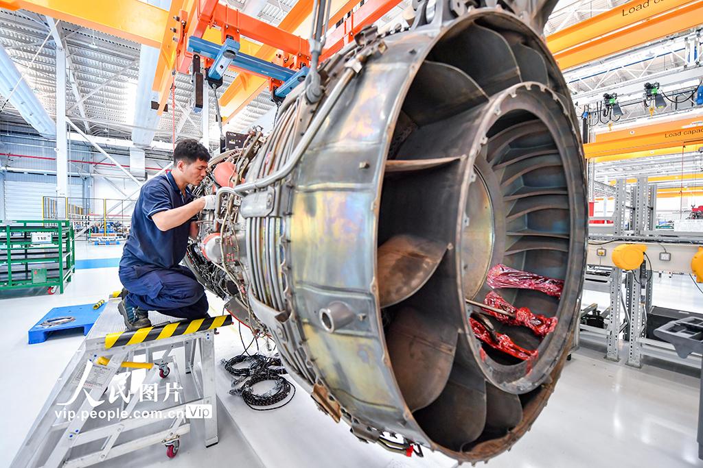 2026年3月23日,海南海口,海口美兰空港吉耐斯航空发动机维修工程有限公司内,工作人员正在对航空发动机及零部件进行检修。