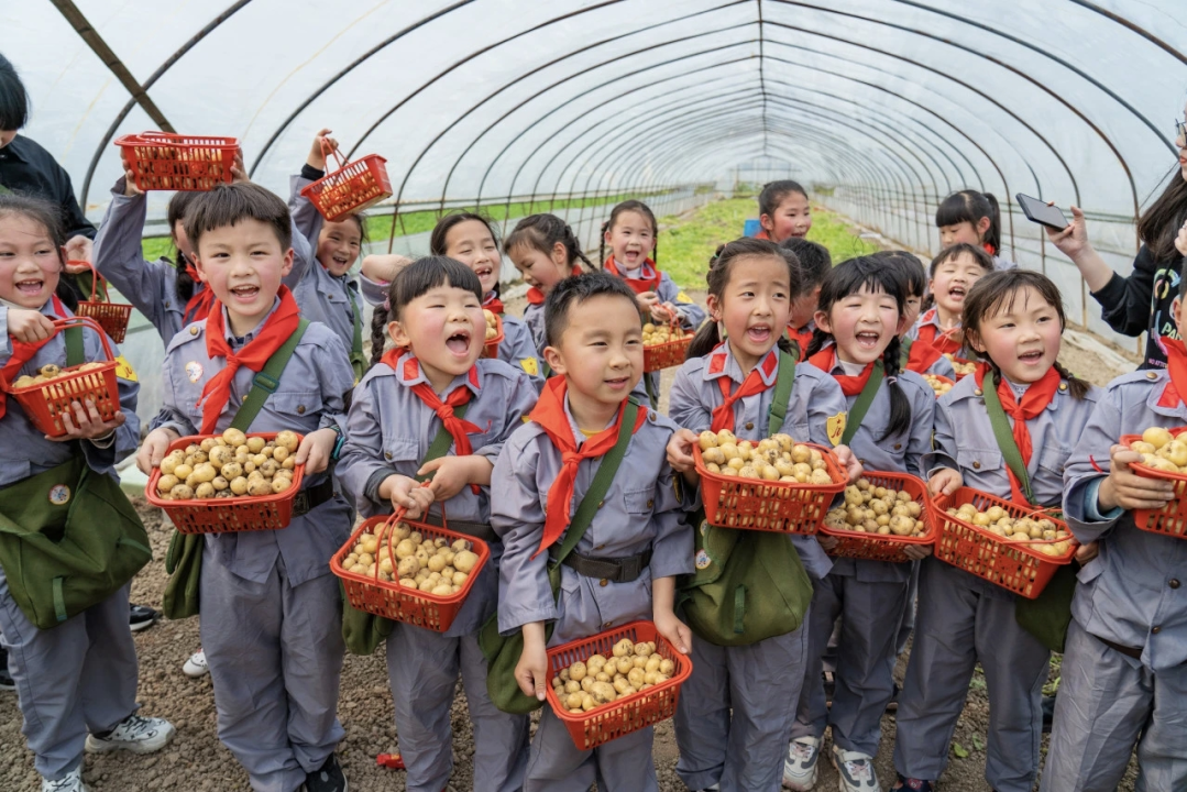 品牌响了,路子也宽了。人大代表又动起了农旅融合的心思,依托红十三军二师革命烈士陵园,将红色研学与劳动实践结合,让学生不仅能接受爱国主义教育,还能体验挖土豆、洗土豆、煮土豆、尝土豆的乐趣。红领巾研学基地开展的“春田‘耕’新 乐享食趣”活动更是吸引了众多亲子家庭参与,孩子们挥锄破土、动手烹煮,田间地头欢笑声不断。