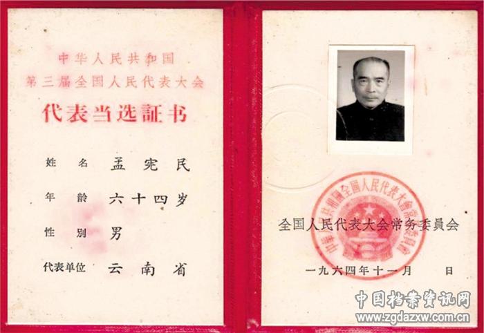 在新中国建设的壮阔征程中,孟宪民以专家之识深耕地质领域,以代表之责心系国计民生,书写出无愧于时代的人生华章。2024年6月,孟庆元将其父孟宪民第三届全国人民代表大会代表当选证书捐献给常州市档案馆。这件珍贵的当选证书见证了一位科学家“国之所急、心之所系”的赤胆忠心,也激励着新时代科技工作者,在强国建设、民族复兴的新征程上勇担使命、再立新功。