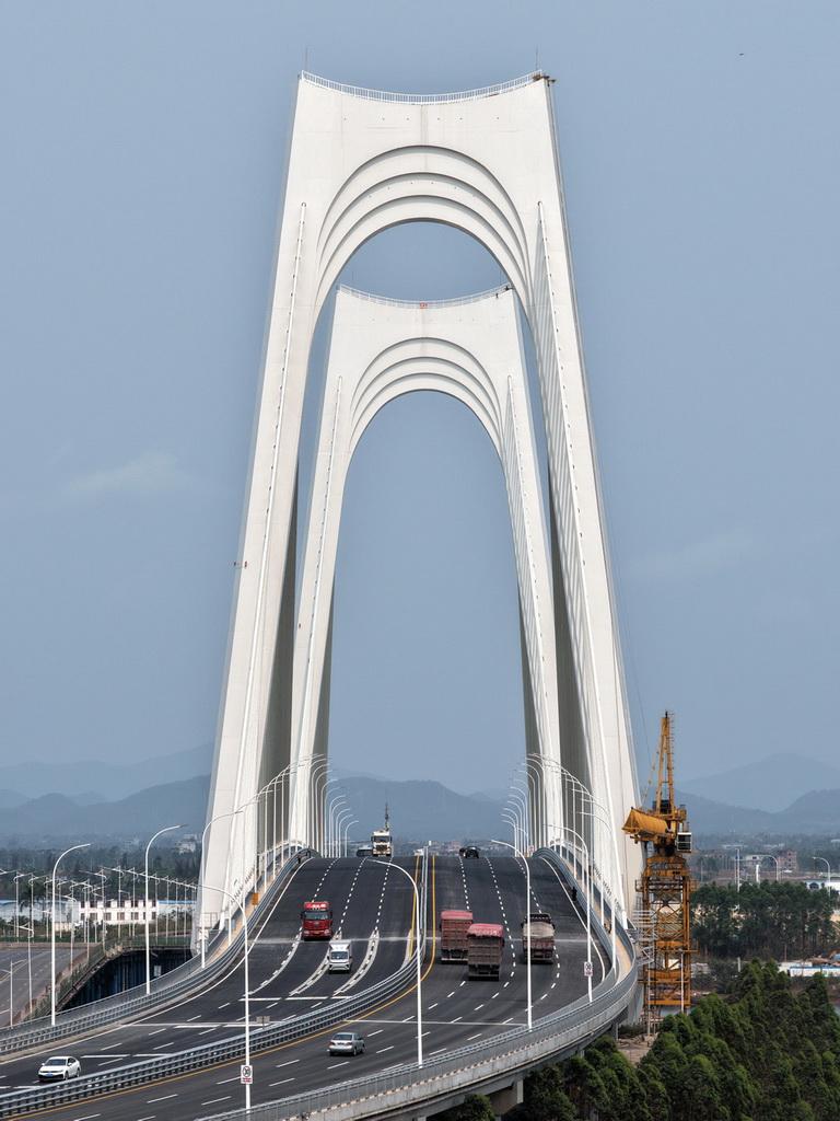 3月31日,地处钦江入海口的平陆运河沙井钦江大桥建成通车。至此,平陆运河规划的27座跨线桥梁中,已有25座桥梁建成通车,全线桥梁工程即将收官。新华社记者 周华 摄