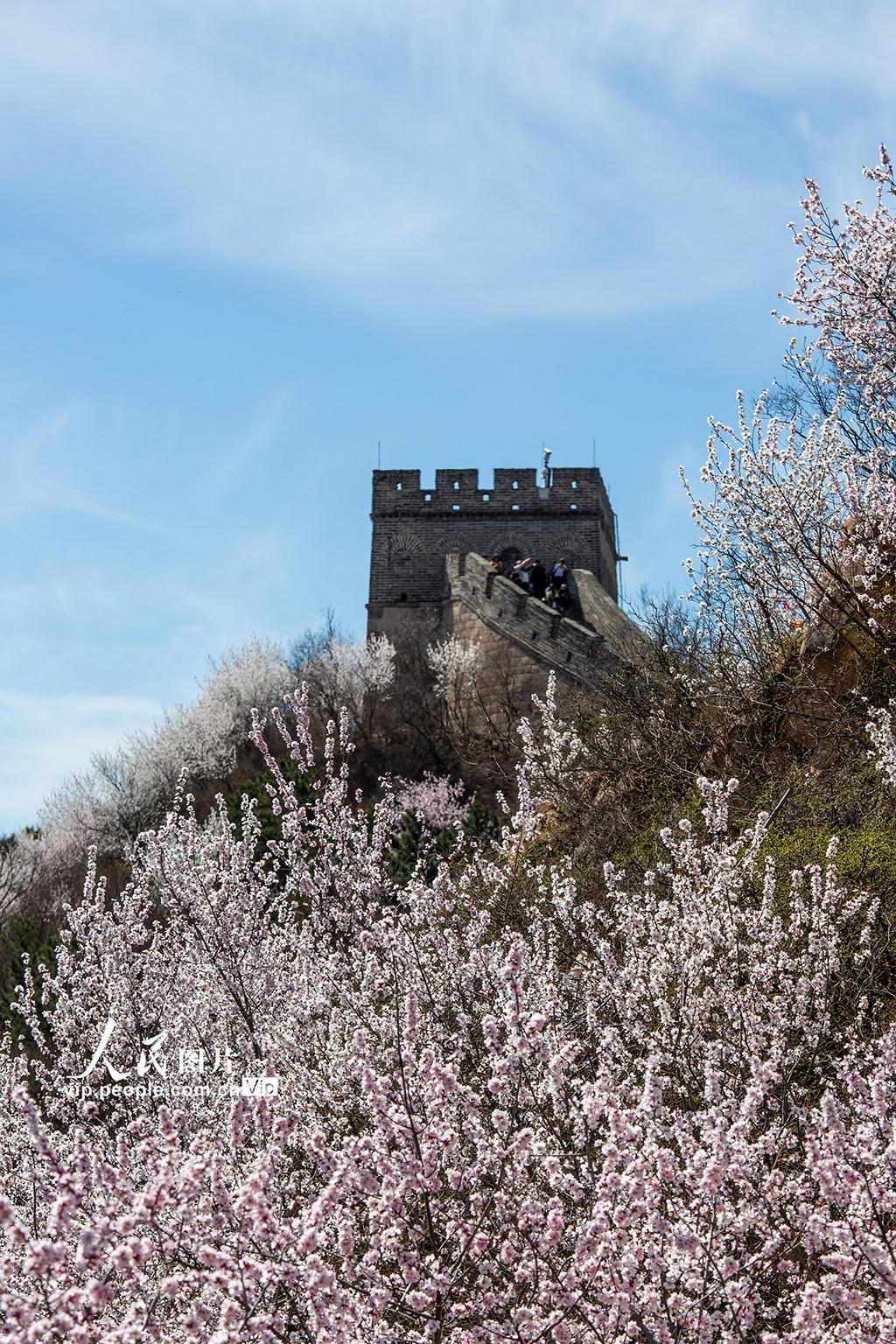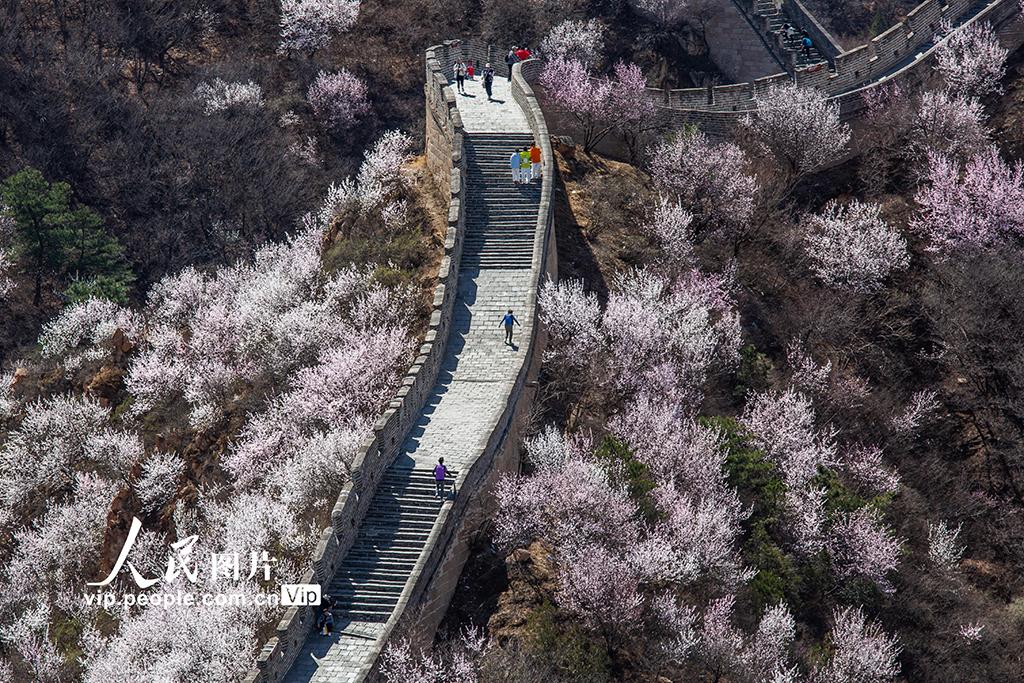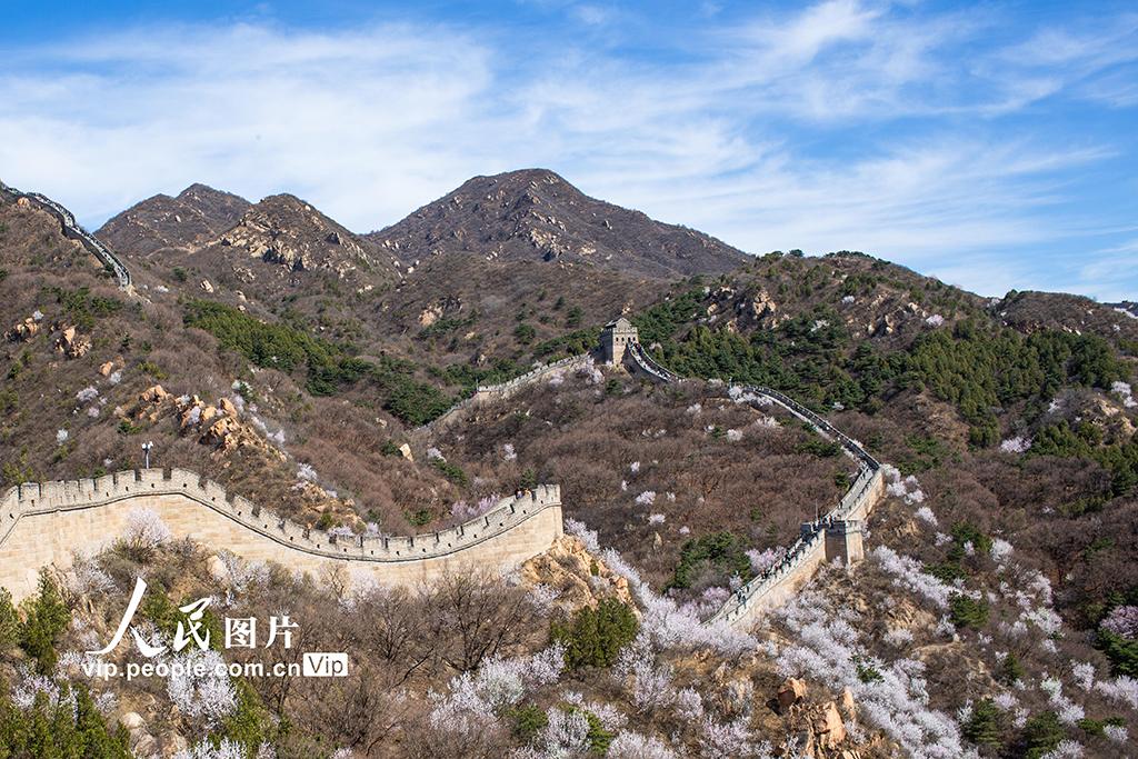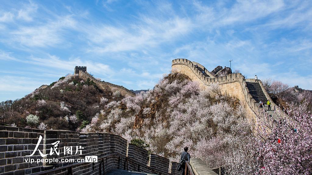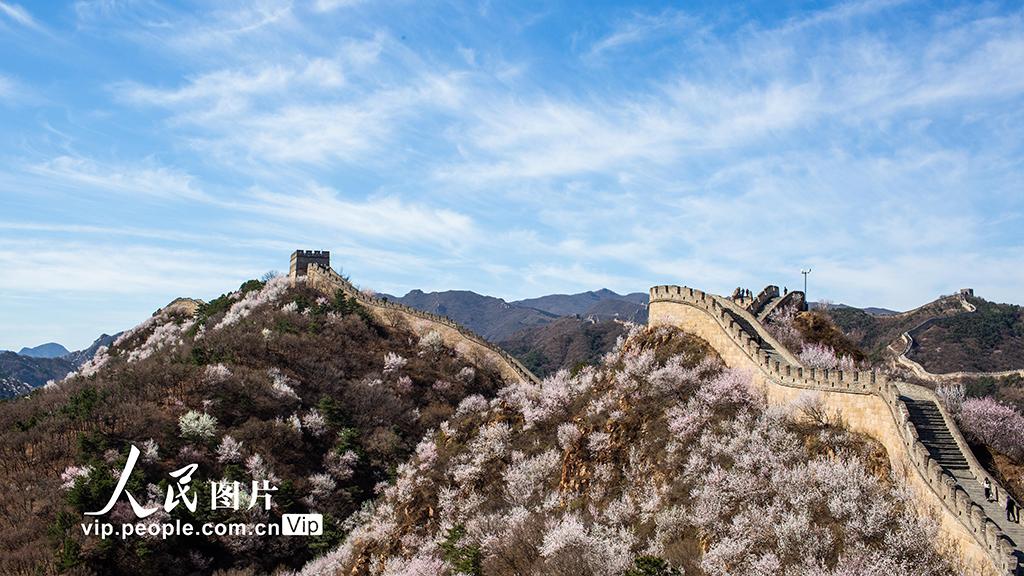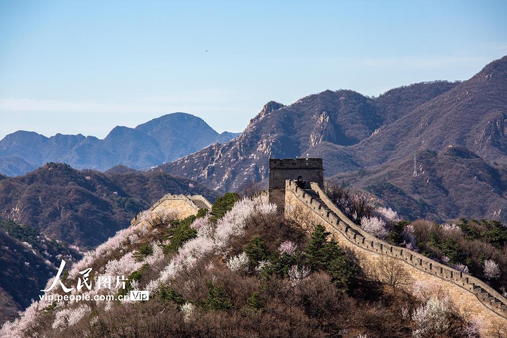 2026年4月1日,北京八达岭长城景区,山桃、杏花漫山绽放,绘出春日限定画卷。张立新摄