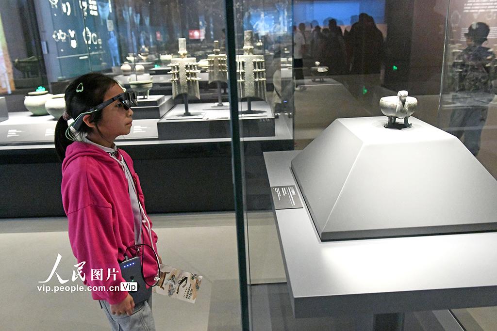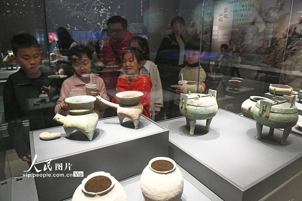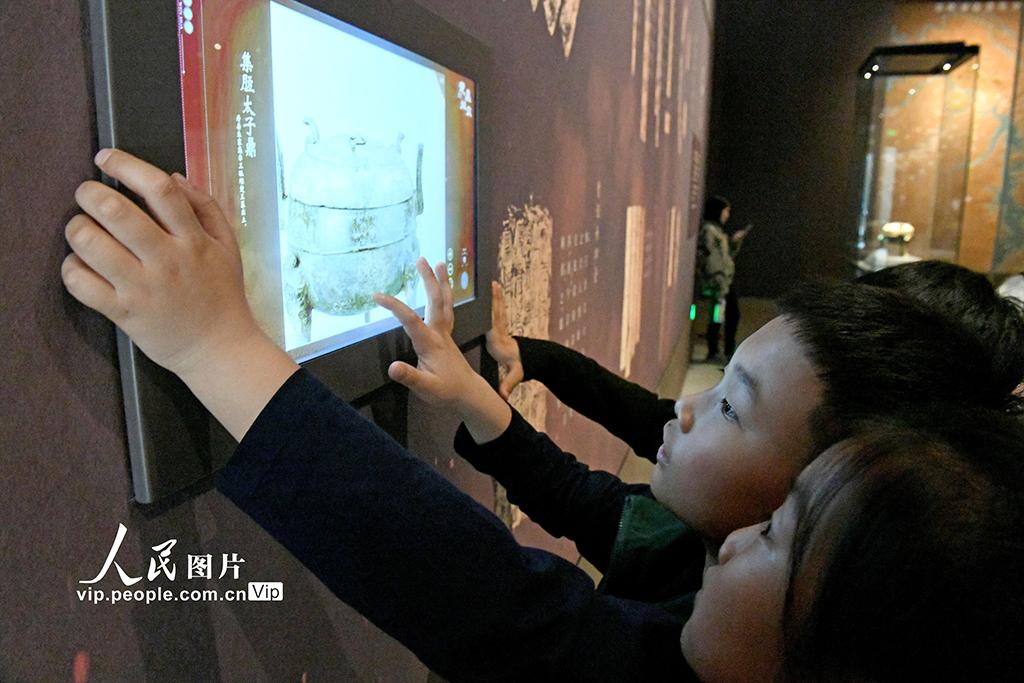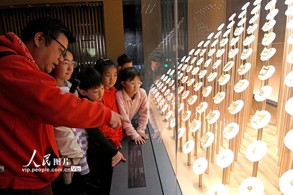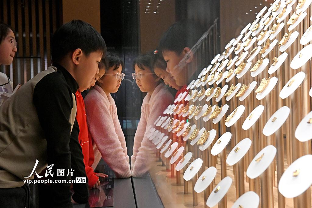 2026年4月1日,在安徽淮南寿县安徽楚文化博物馆,小学生们正在了解楚金币。