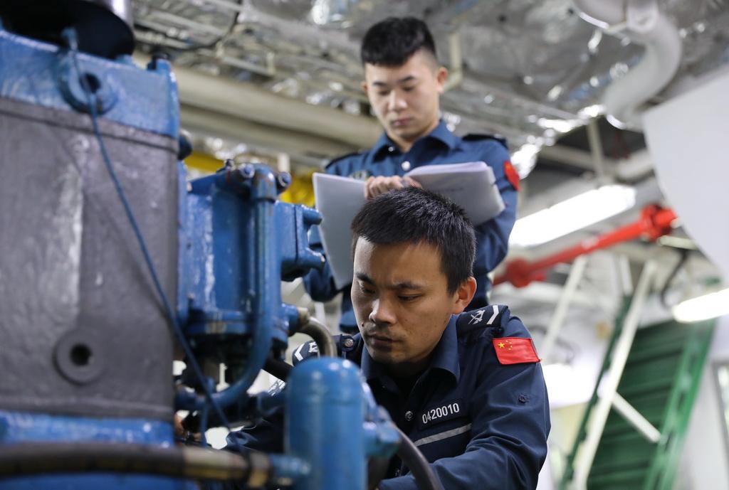 在劈波斩浪的万山舰上,海警执法员在各自的岗位上恪尽职守,默默奉献,守护祖国。新华社记者 凡帅帅 摄