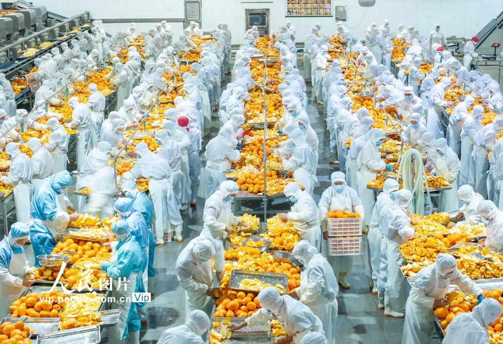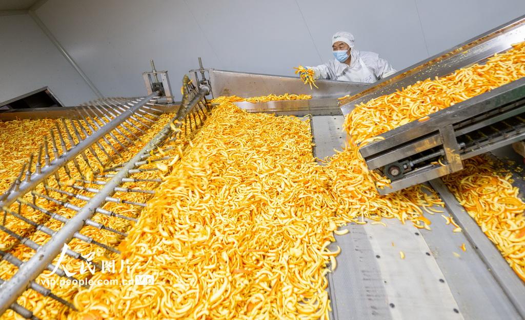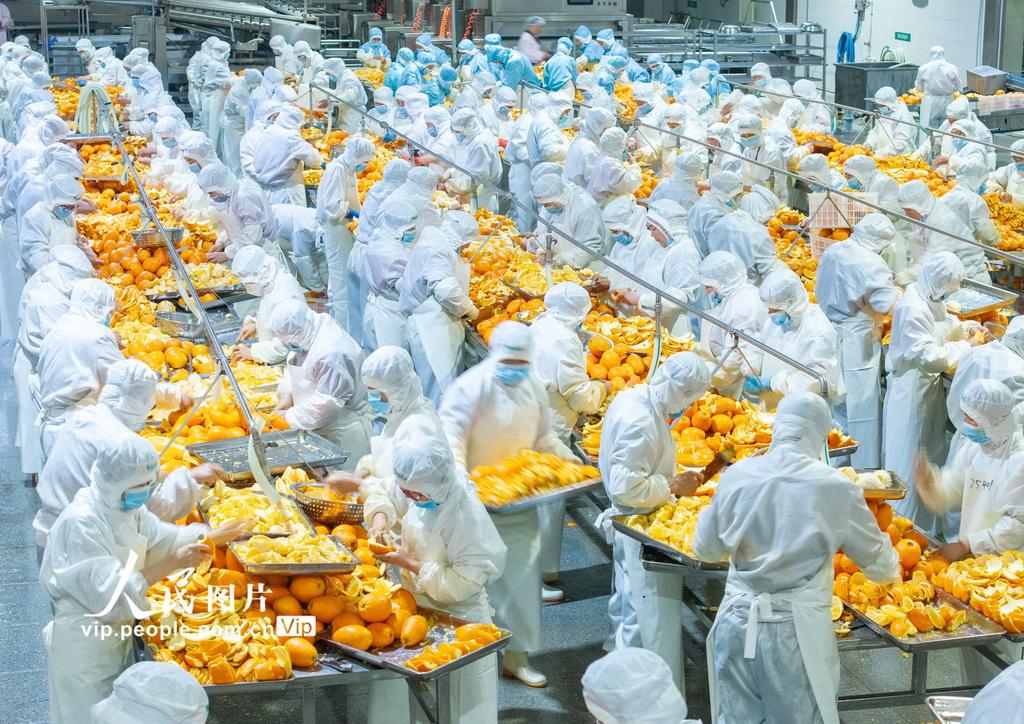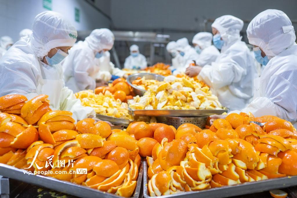 在中国脐橙之乡湖北省宜昌市秭归县,当地食品加工企业选用优质鲜橙果皮,创新采用物理去苦、低温慢煮、精准控糖、橙皮护色等现代化加工工艺,精制出糖渍橙皮丁,应用于烘焙、餐饮等多领域产品矩阵的生产,通过资源高效利用与价值提升,推动果农增收、企业发展,助力乡村全面振兴。雷勇摄