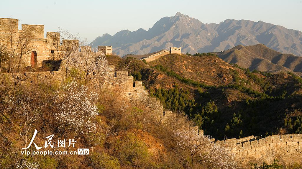2026年4月11日,河北承德滦平县金山岭长城山花烂漫,景美如画。周万平摄