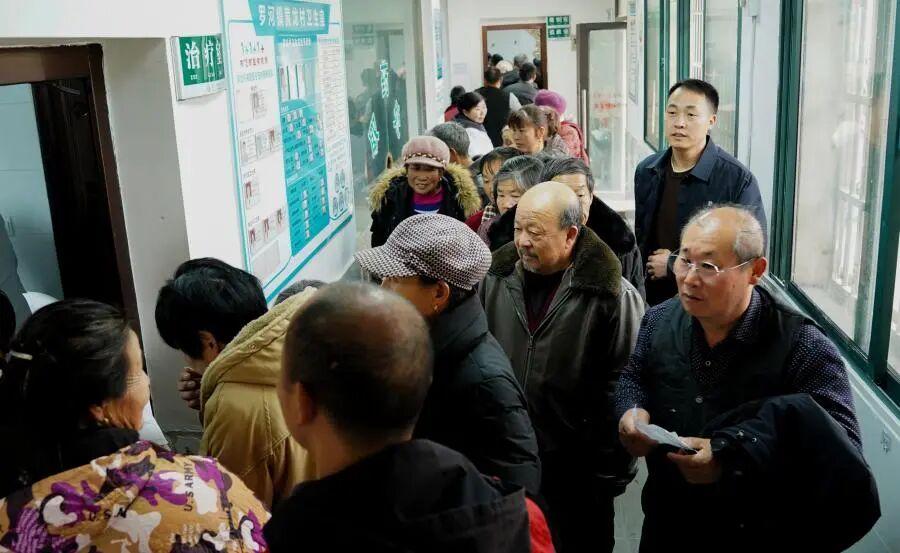 诊室外,乡亲们排队候诊。