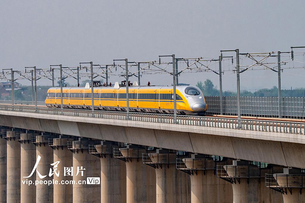 当日,检测列车按计划逐级提速,经多轮测试,顺利达到385公里/小时的试验目标速度,为后续线路开通运营打下坚实基础。曹欣摄