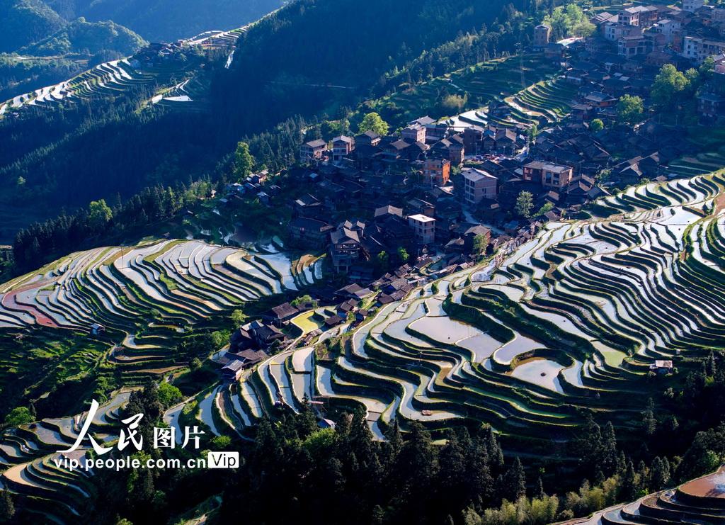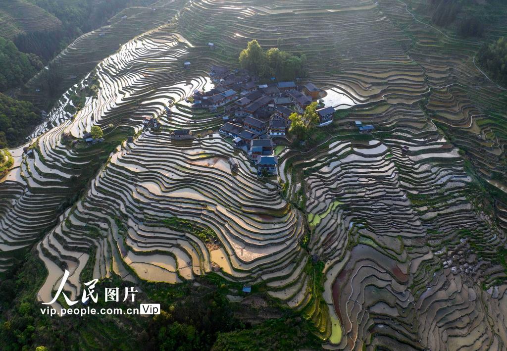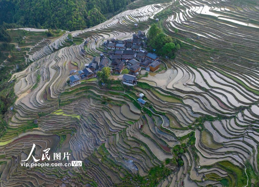 临近谷雨,贵州省从江县加榜乡加车村的高山梯田储水待插,镜面一样的稻田与线条分明的田埂、错落有致的民居相映成趣,美不胜收。龙涛摄