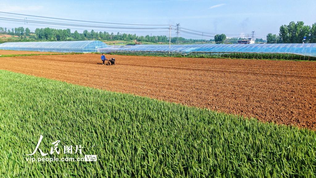 2026年4月17日,河南省南阳市卧龙区,当地农民抢抓农时,在田间进行“一喷三防”、耕地、施肥、起垄等农事作业,为丰产丰收夯实基础。