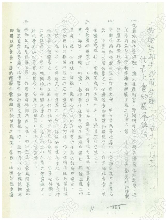 1943年10月,陕甘宁边区政府颁发《劳动英雄与模范生产工作者大会及其代表大会的选举办法》(陕西省档案馆藏)
