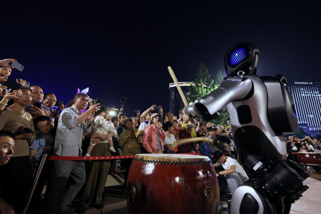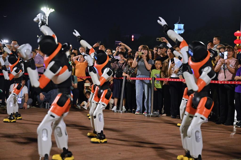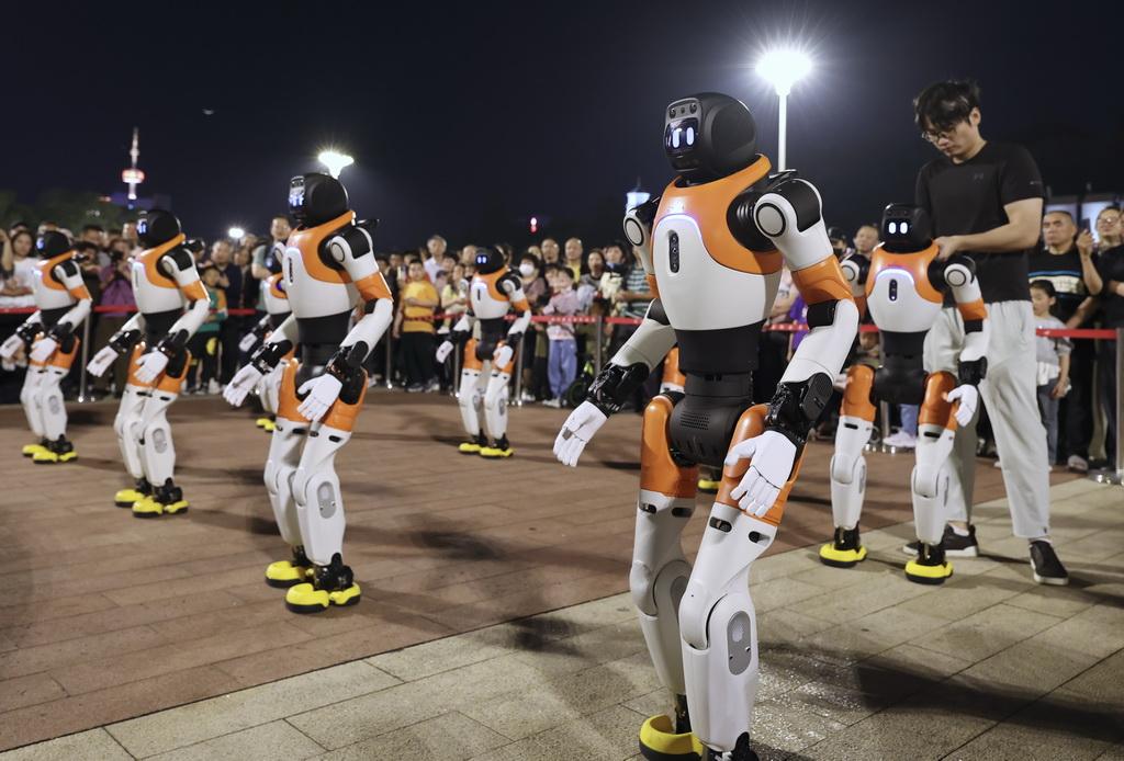 4月19日,为迎接第九届数字中国建设峰会,充满科技感与观赏性的具身智能机器人路演活动在福州五一广场举行,让市民沉浸式感受数字峰会的科技魅力。新华社记者 姜克红 摄
